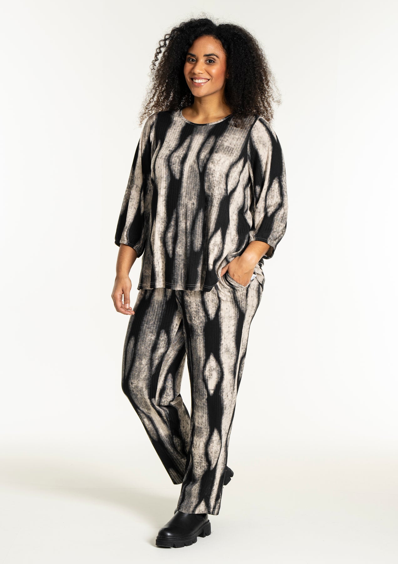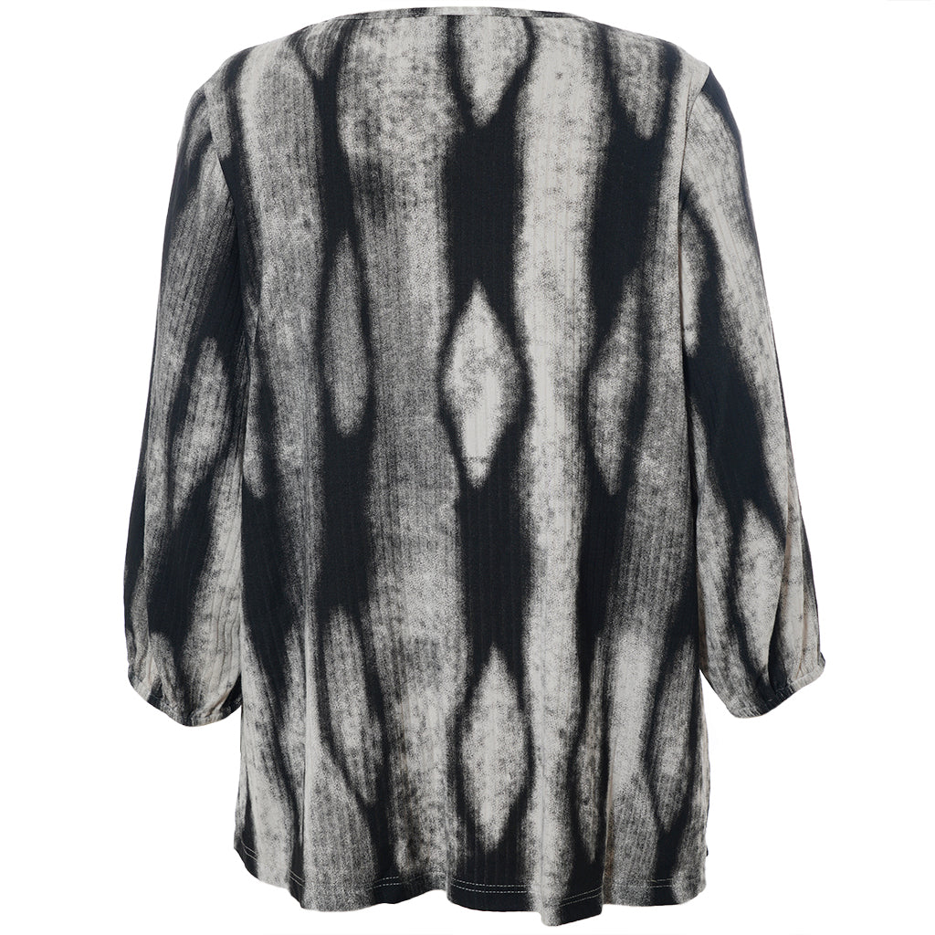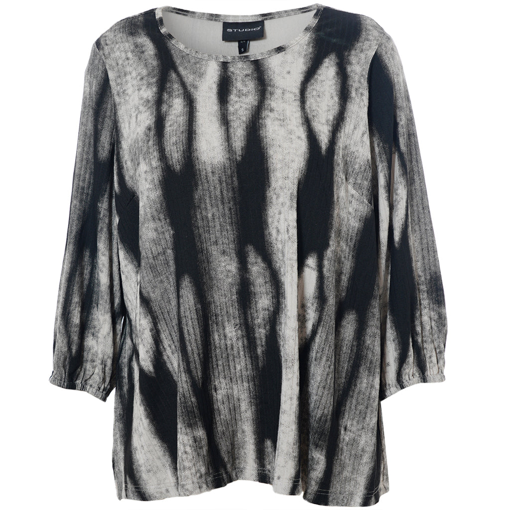 Studio - Vitta falleg og sparileg blússa með mynstri. Rúnað hálsmál, kvartermar með teygju, rifflað efni. Flott bæði sem hversdags og betri flík og passar vel með hverju sem er.