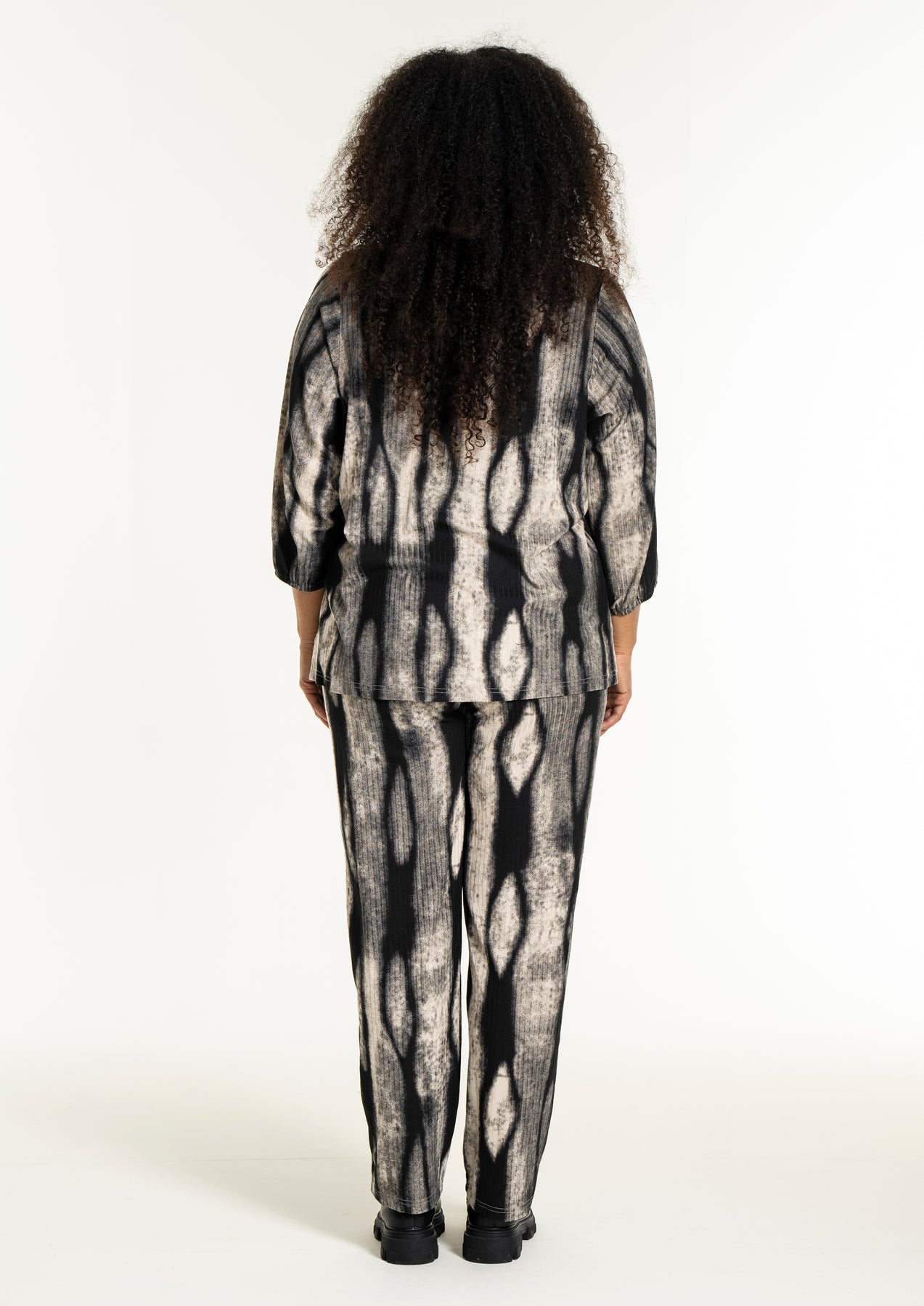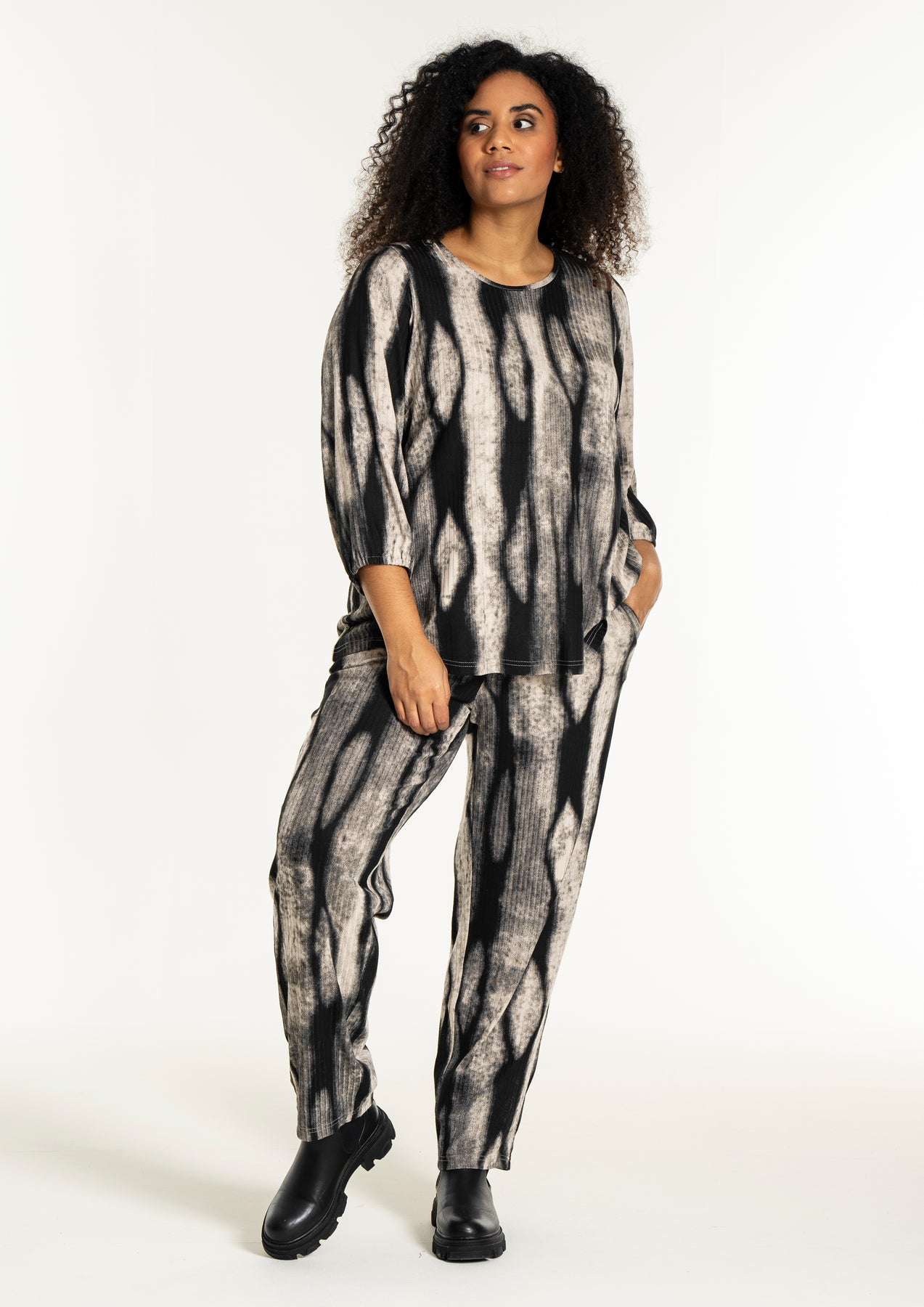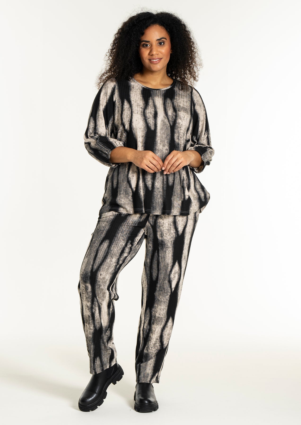 Studio - Vitta falleg og sparileg blússa með mynstri. Rúnað hálsmál, kvartermar með teygju, rifflað efni. Flott bæði sem hversdags og betri flík og passar vel með hverju sem er.