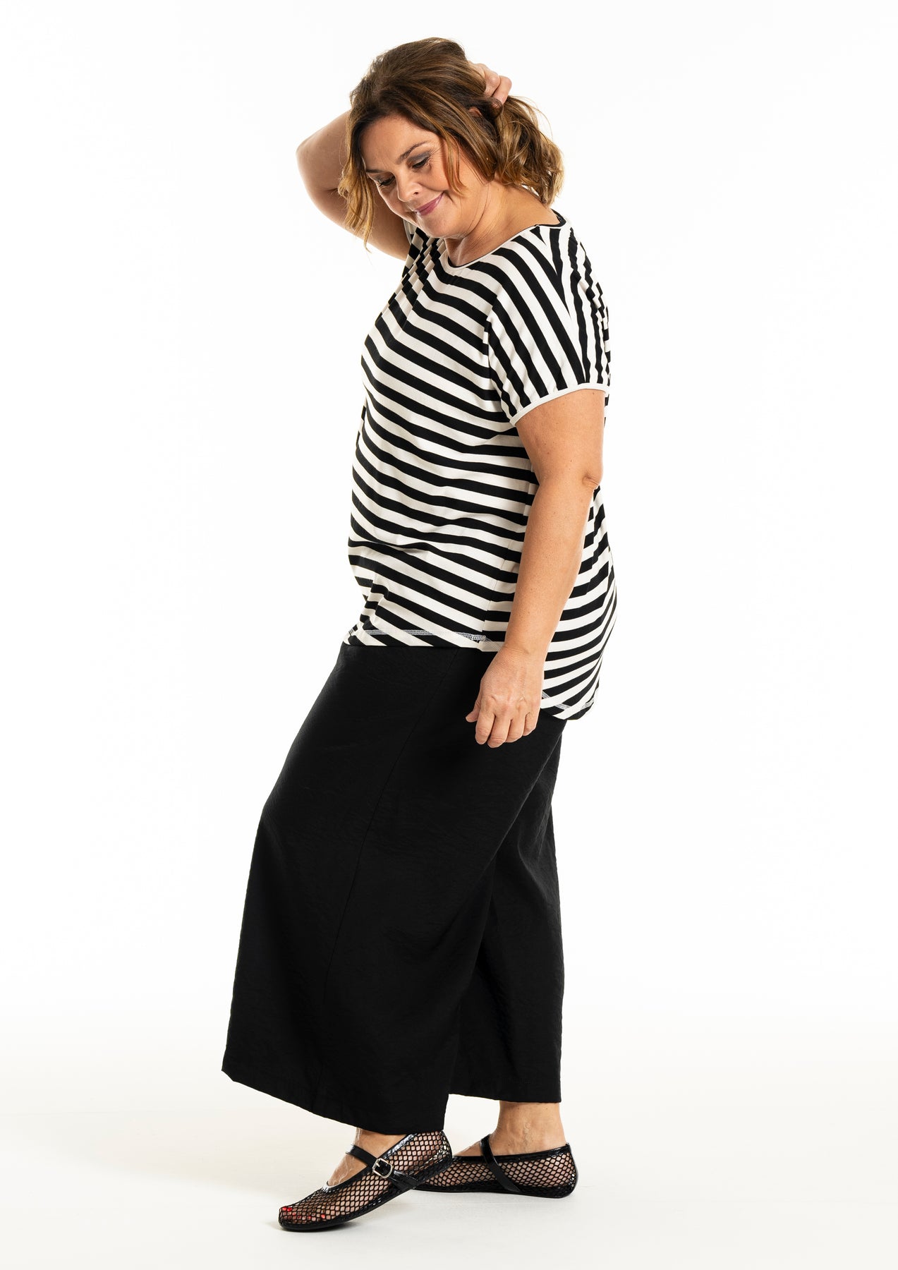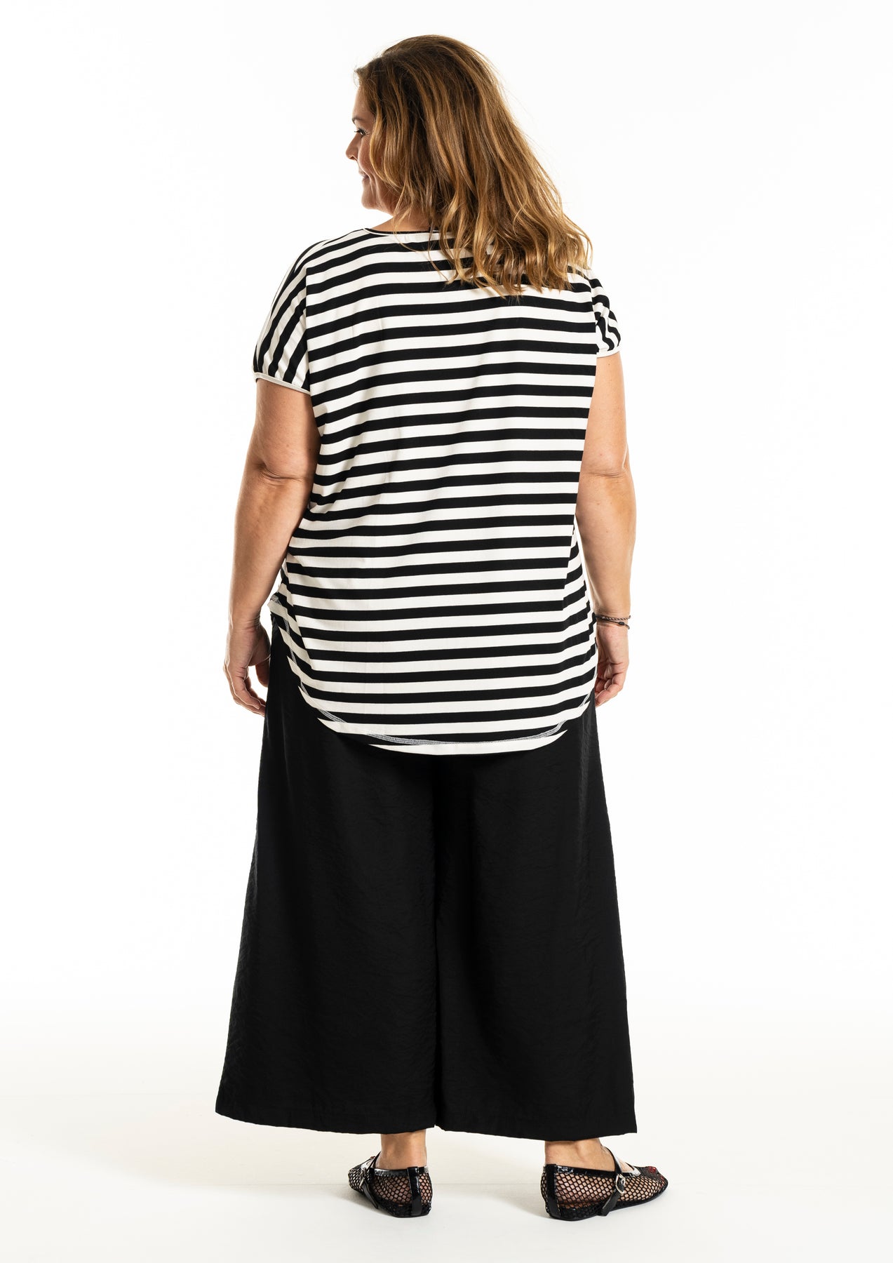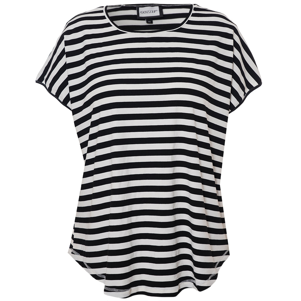 GOZZIP - Gitte röndóttur stuttermabolur. Bolurinn er úr góðu og þægilegu viskosefni, rúnað hálsmál, rúnaður að neðan og örlítið meiri sídd að aftan.