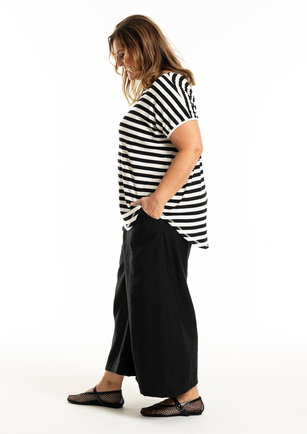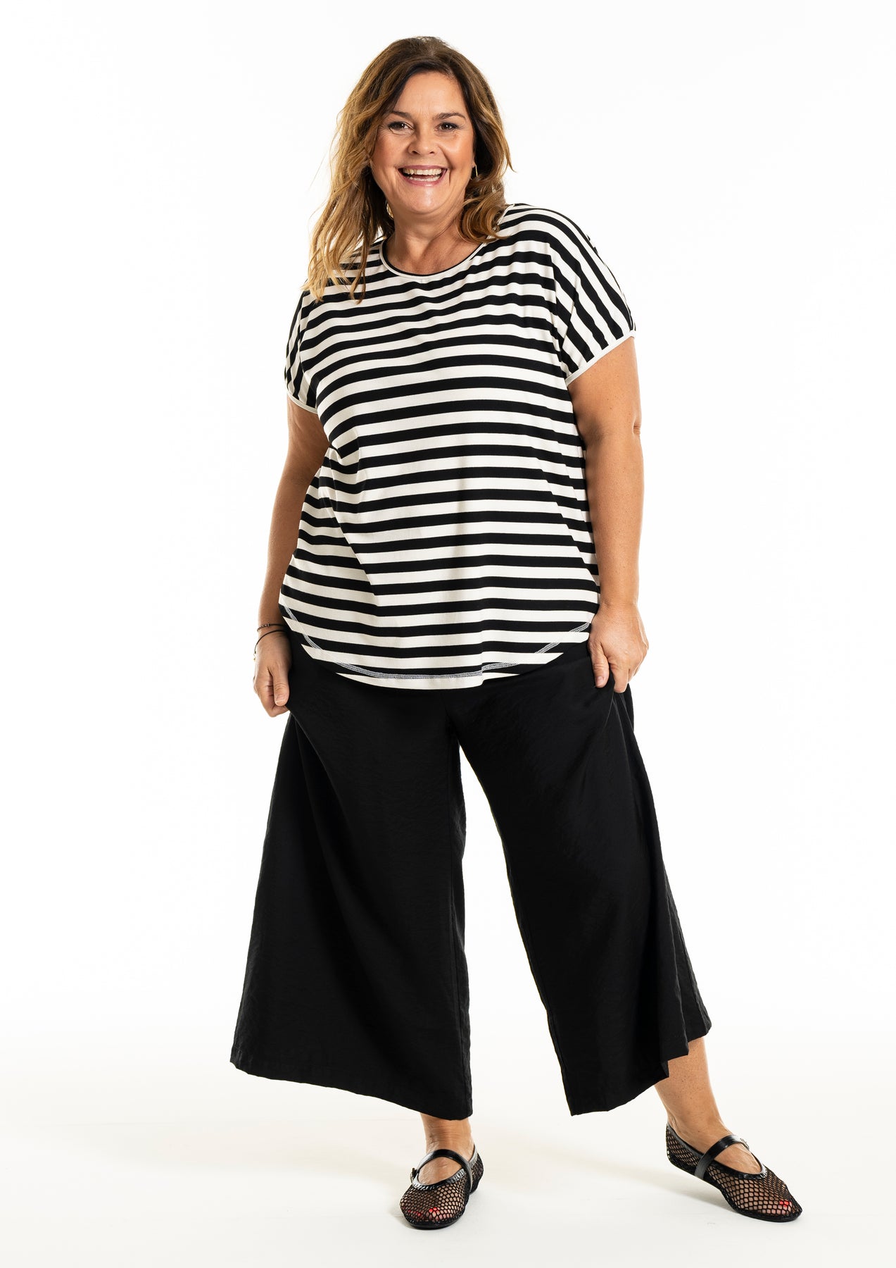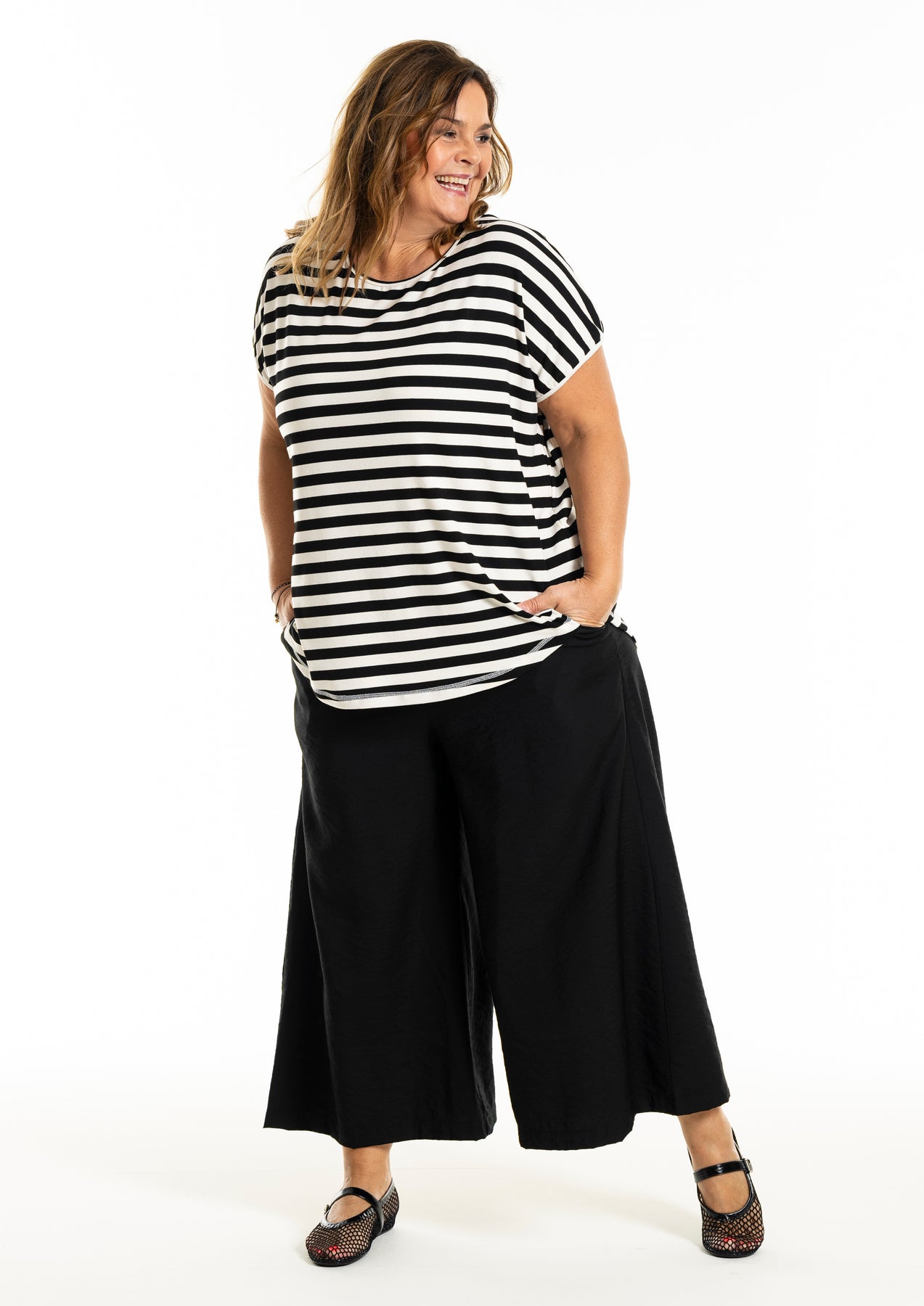 GOZZIP - Gitte röndóttur stuttermabolur. Bolurinn er úr góðu og þægilegu viskosefni, rúnað hálsmál, rúnaður að neðan og örlítið meiri sídd að aftan.