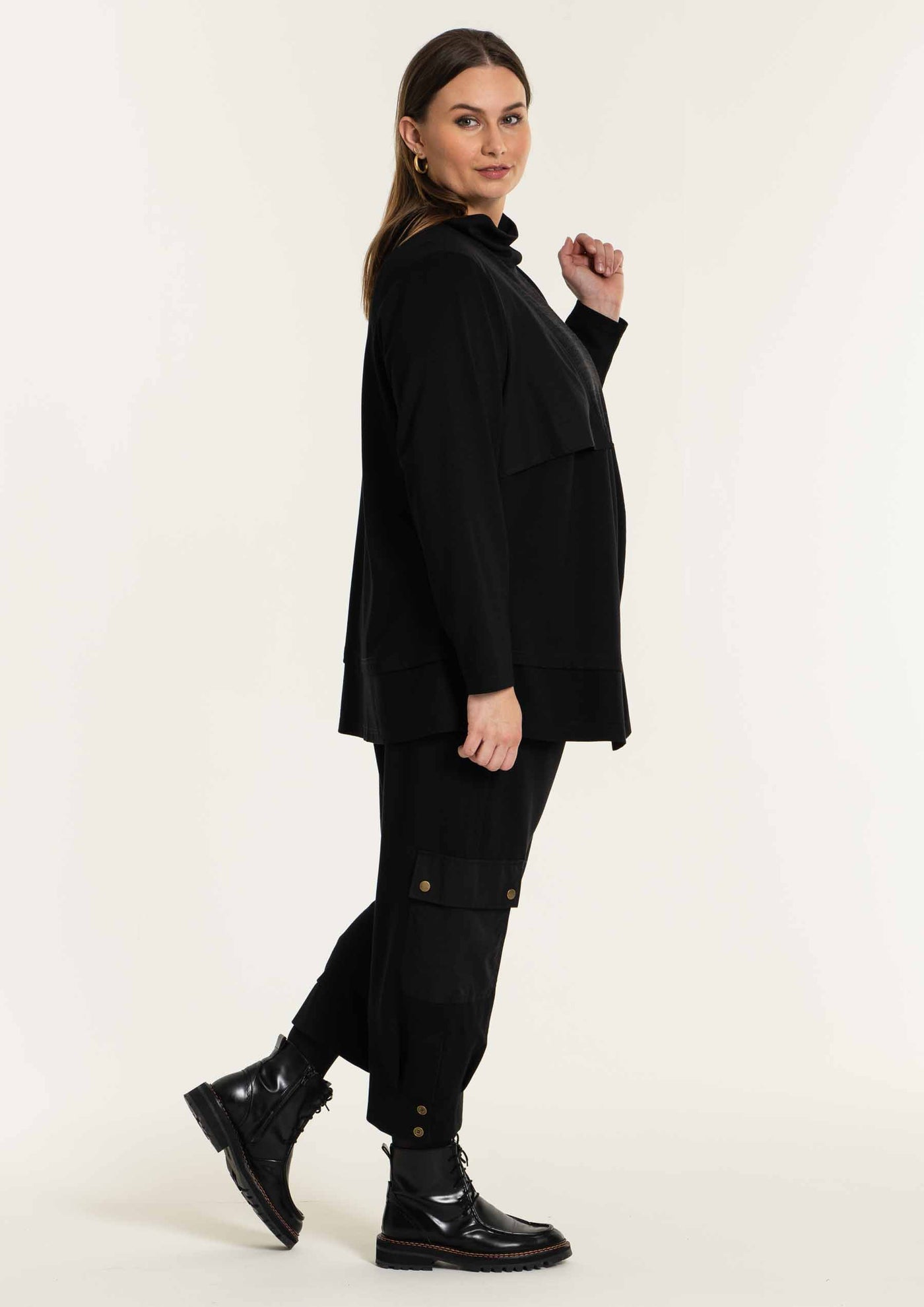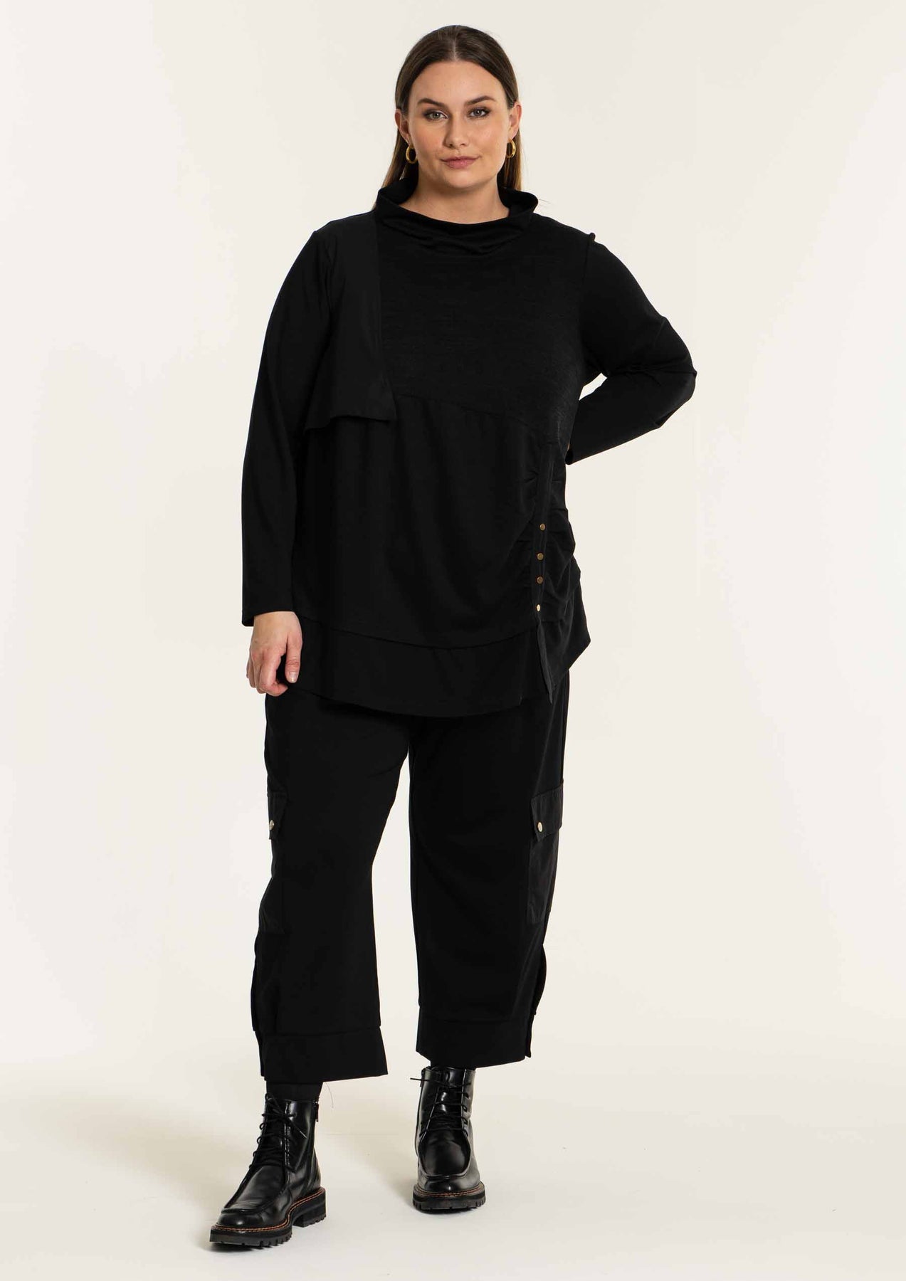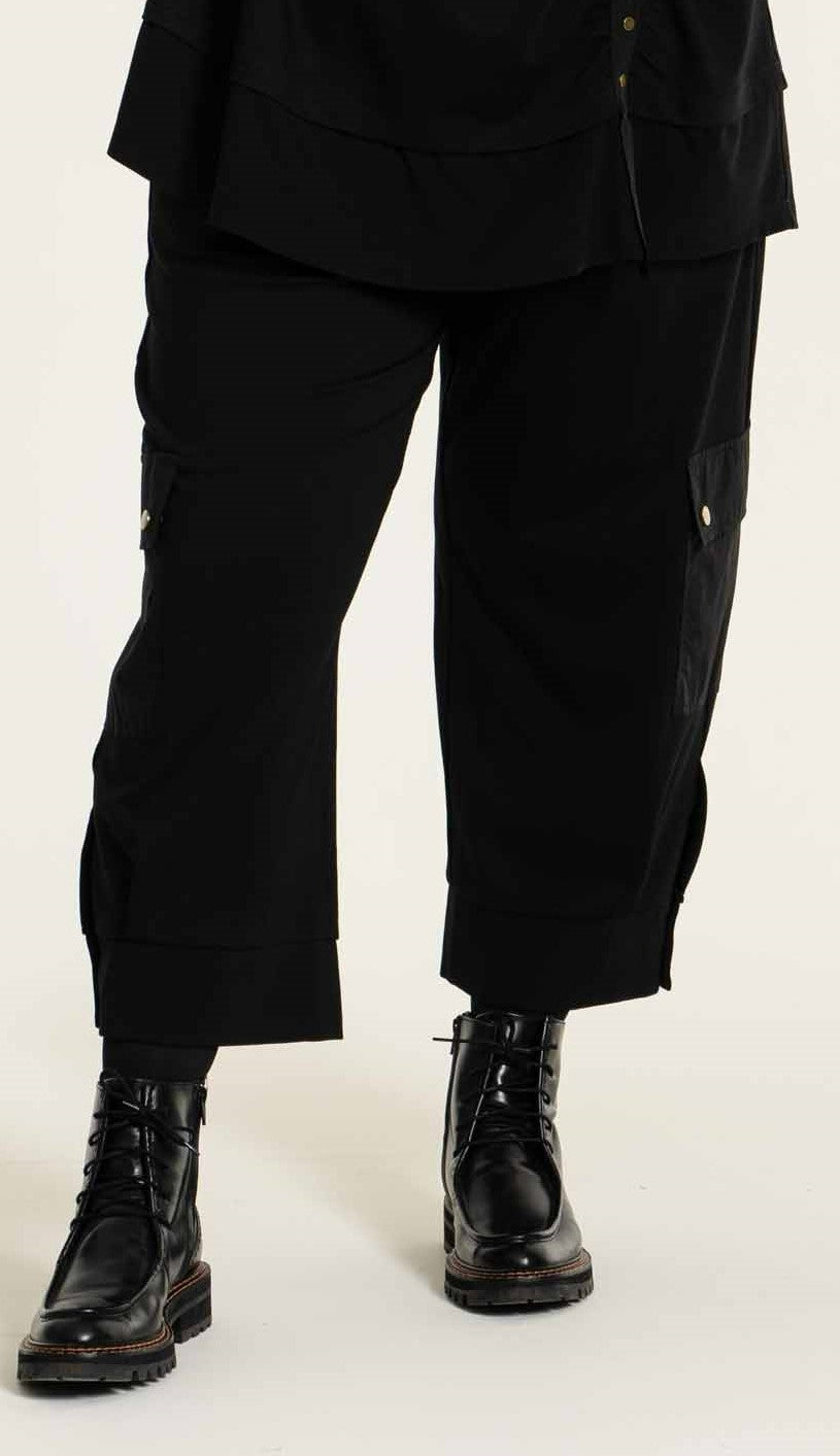Gozzip Black - Jacqueline buxur, góð og breið teygja í mitti, góðir hliðarvasar, hnepptir kargó vasar á hliðum með gull smellum, tölur neðst, beinar niður.