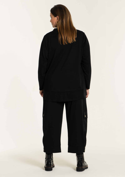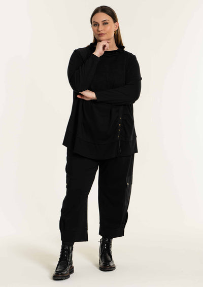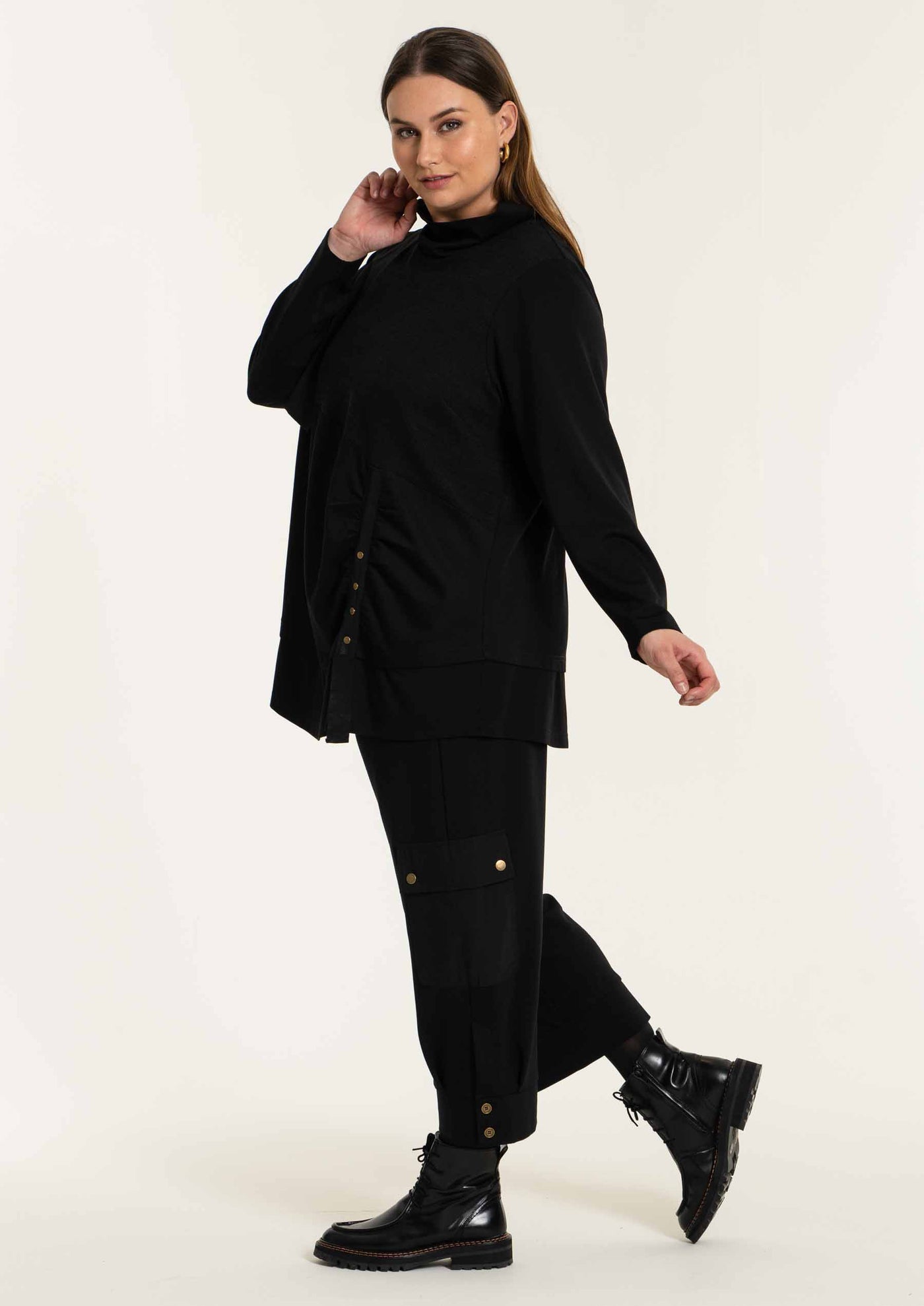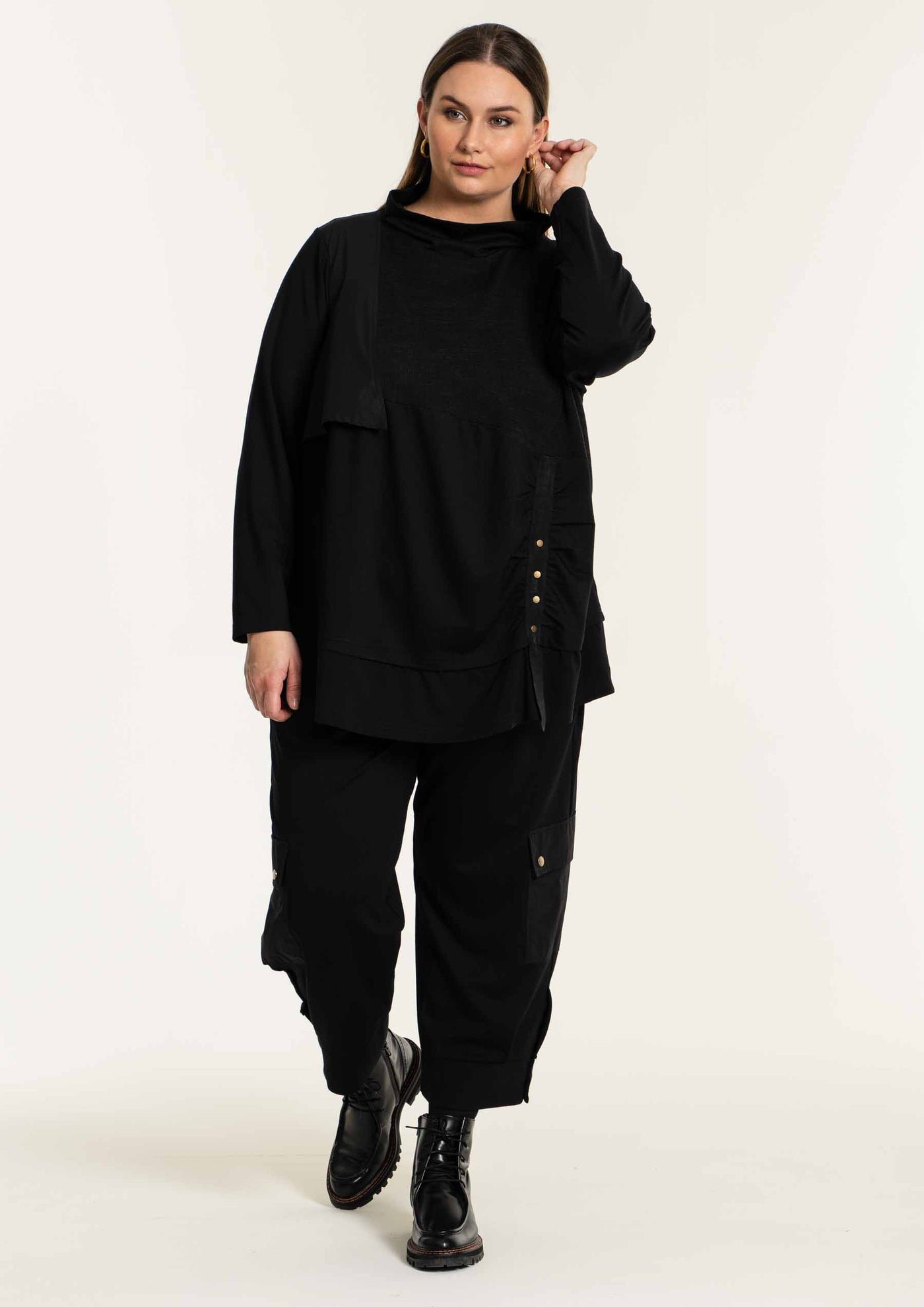 Gozzip Black - Jacqueline buxur, góð og breið teygja í mitti, góðir hliðarvasar, hnepptir kargó vasar á hliðum með gull smellum, tölur neðst, beinar niður.