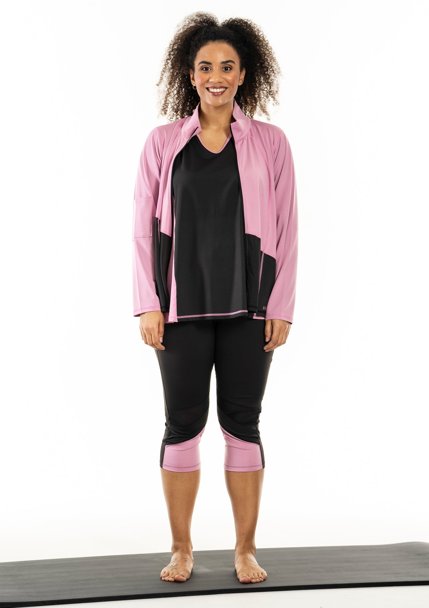 Studio GYM - Fitness Flott rennd peysa í líkamsræktina. Peysan er með háum kraga, löngum ermum og hliðarvösum.