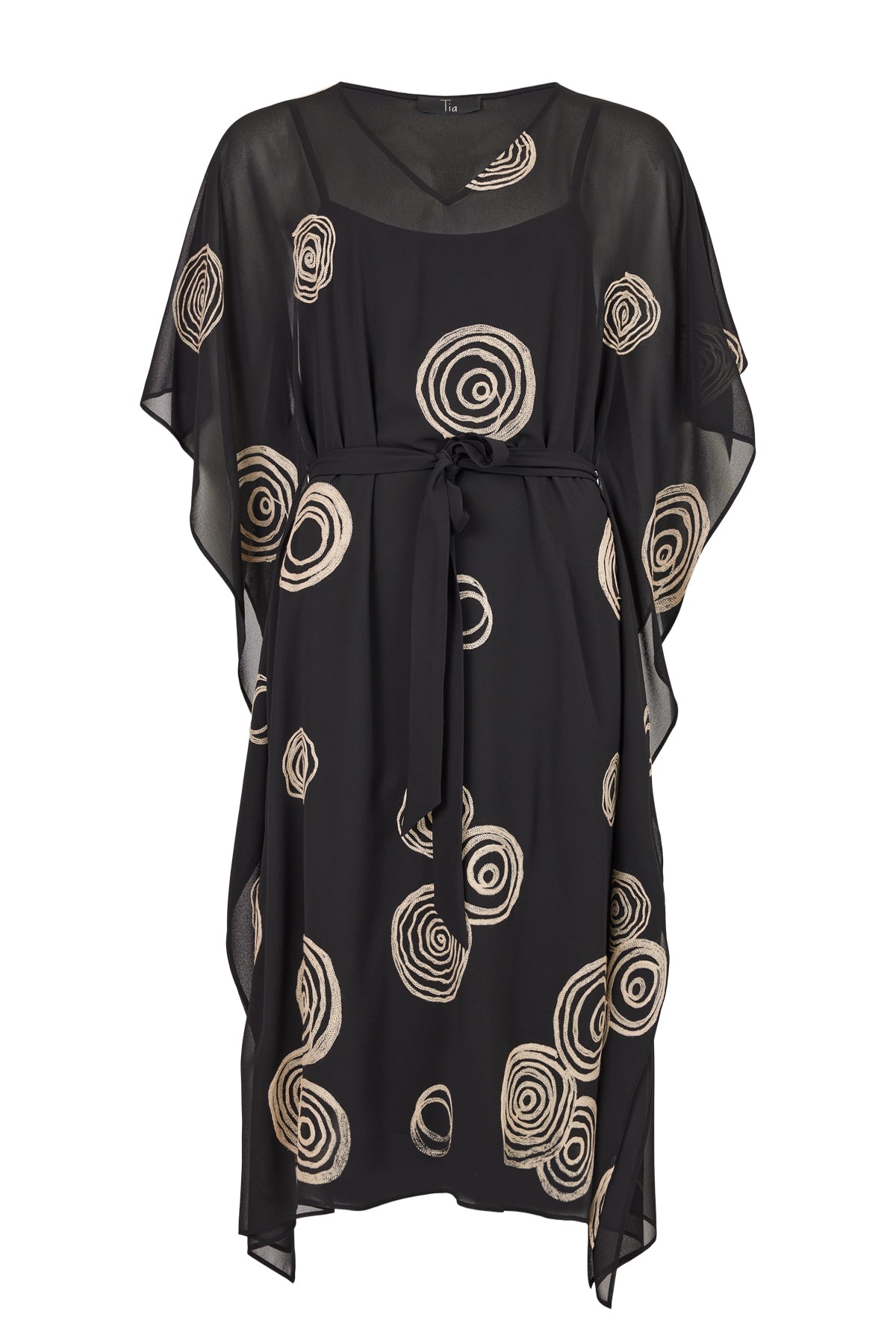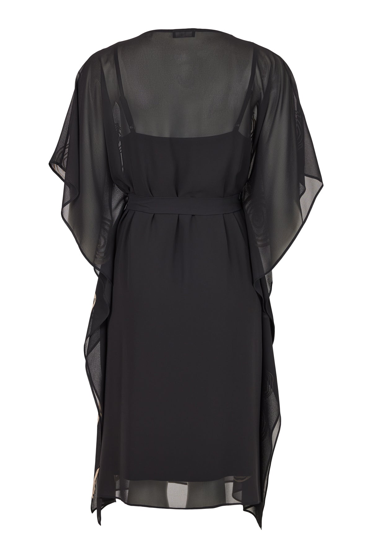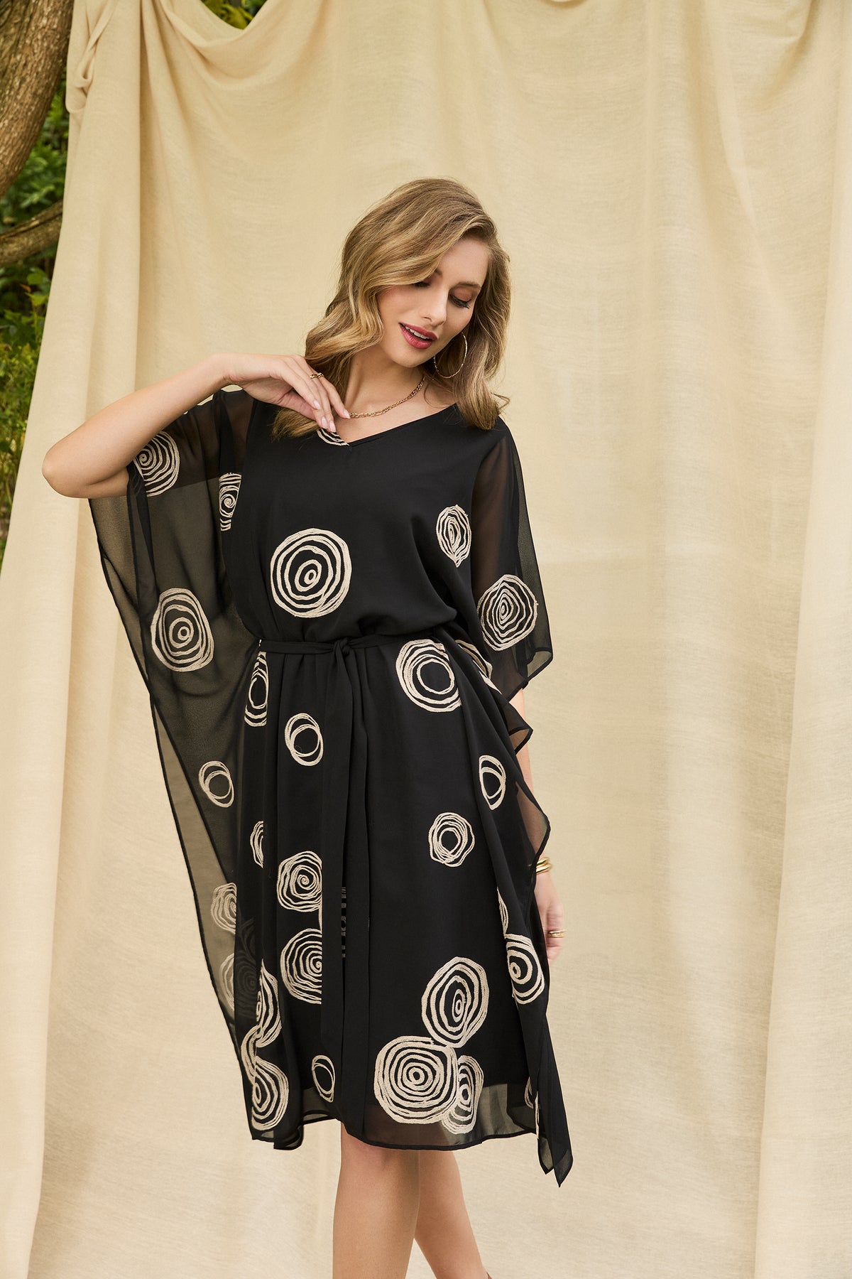 Tia - Bronica, fallegur shiffon kjóll með bandi í mitti, útsaumuðu mynstri, V-hálsmáli og undirkjól.