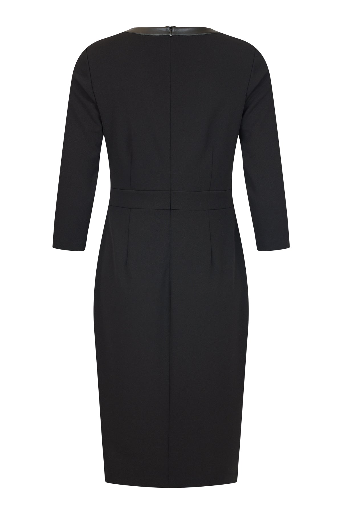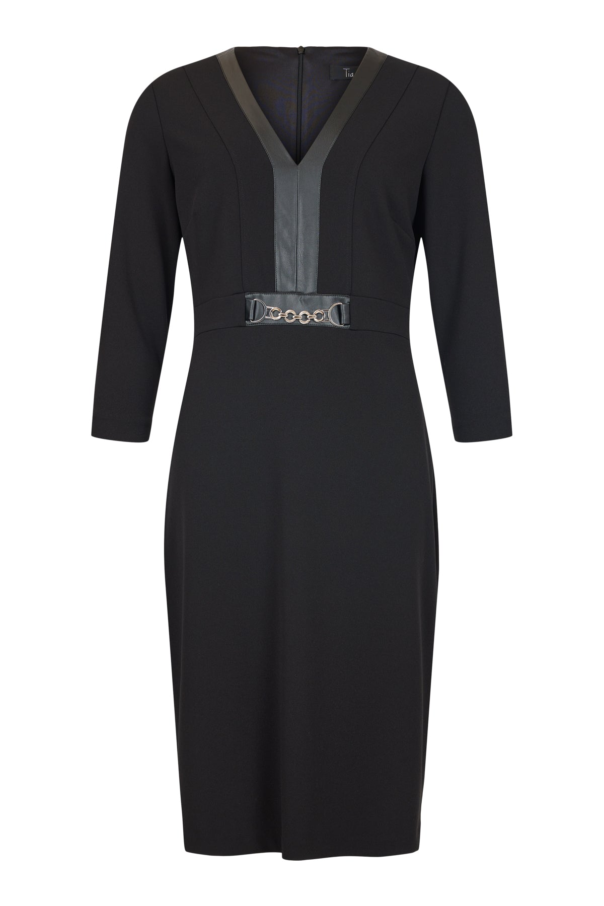 Tia - Jacey flottur og vandaður kjóll. V-hálsmál, kvartermar, pleðurefni í hálsmáli, keðja og pleðurefni að framan, rennilás að aftan.