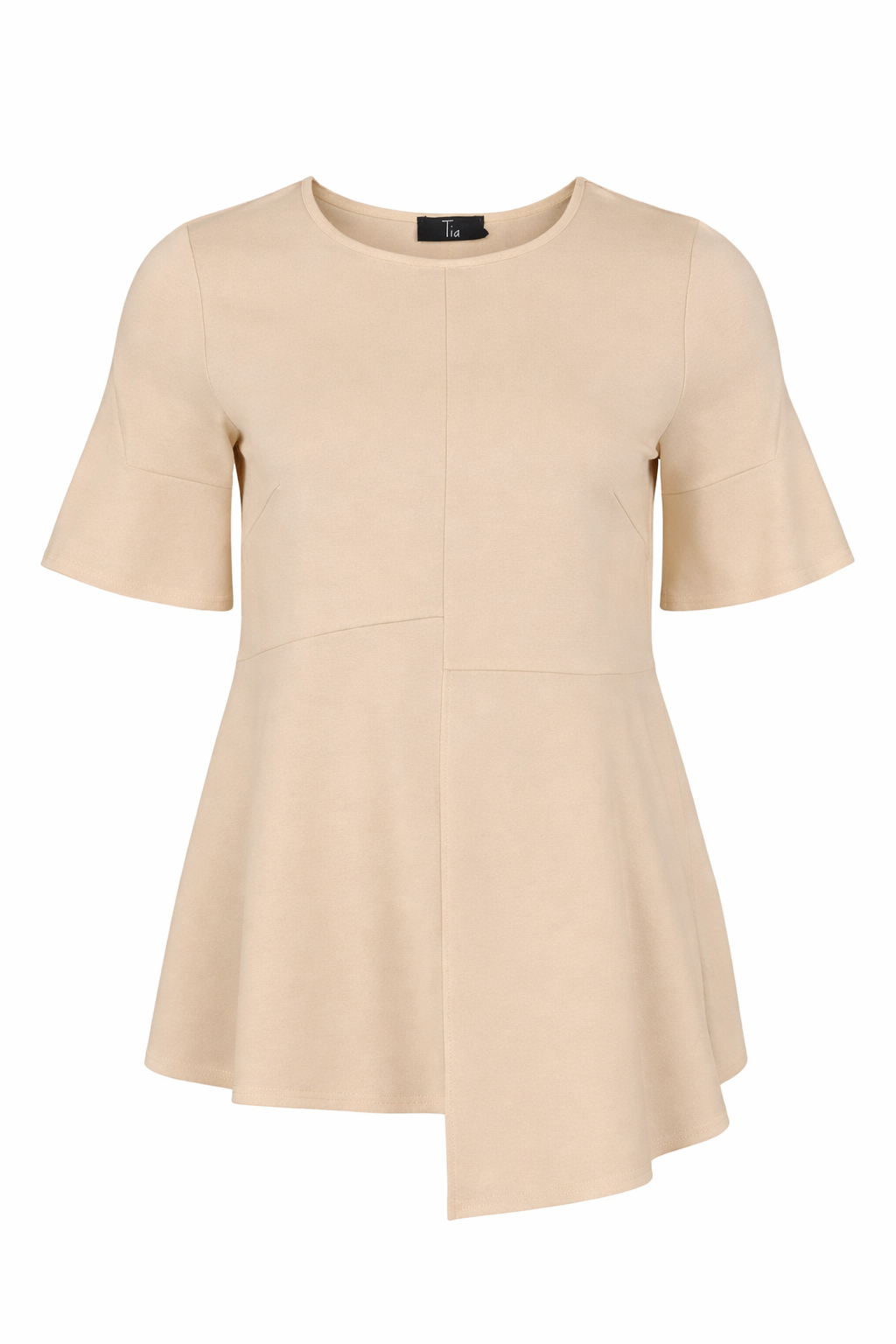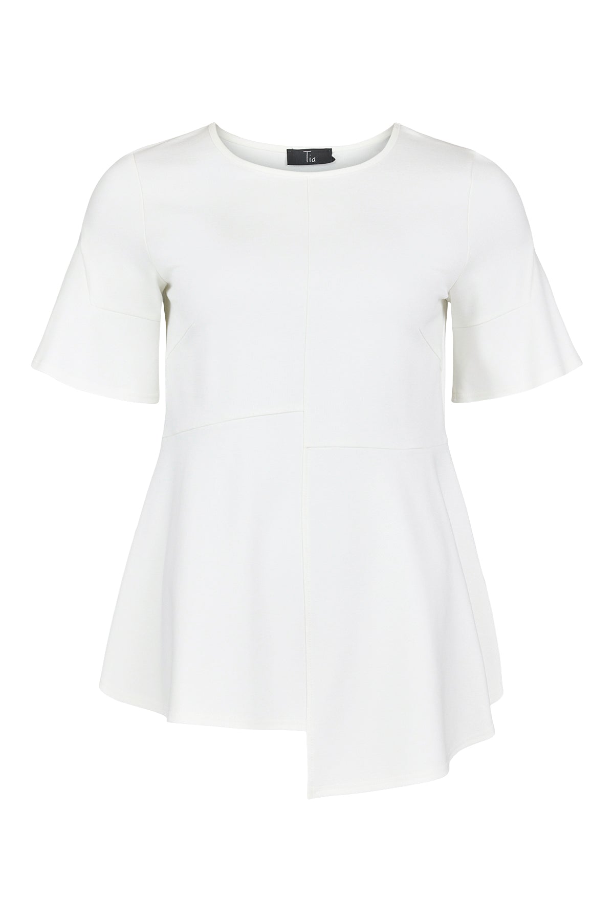 Tia - Laurie falleg og sparileg blússa. Stuttar og útvíðar ermar, rúnað hálsmál, aðeins síðari vinstra megin. Flott blússa sem passar vel með hverju sem er.