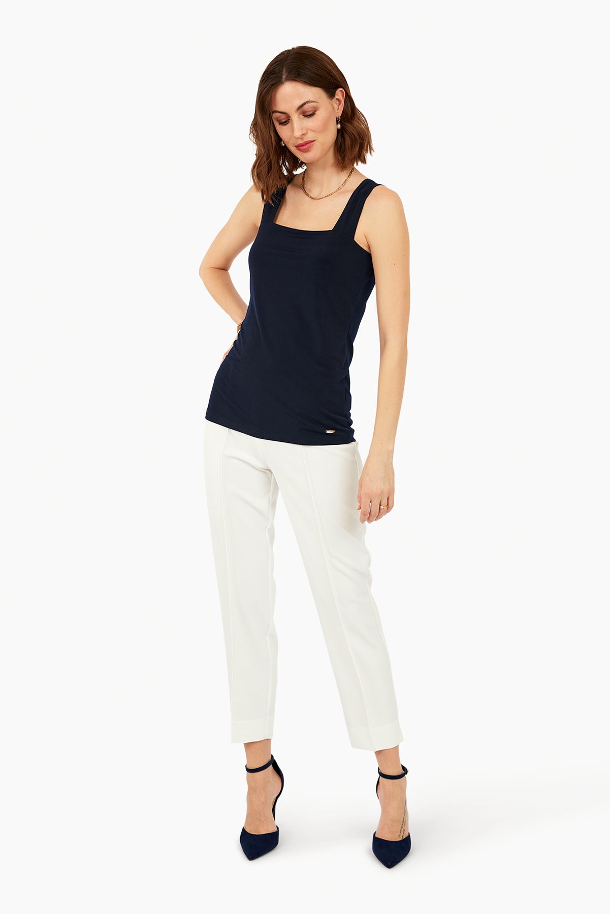Tia - Sylvia flottur og þægilegur toppur. Ferhyrnt hálsmál, breiðir og góðir hlýrar. Góður undir skyrtur og jakka eða bara einn og sér.