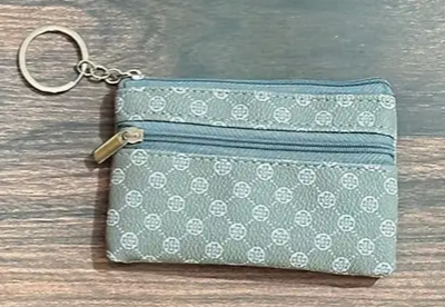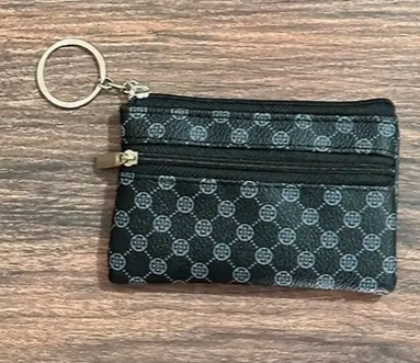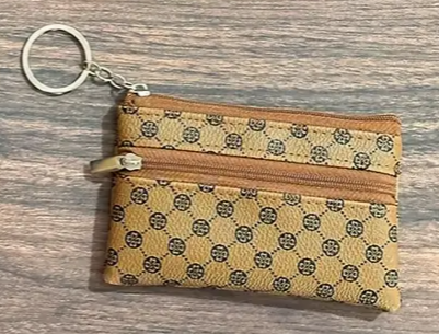 Tara mynstruð peningabudda með tveimur renndum hólfum og lyklakippuhring.