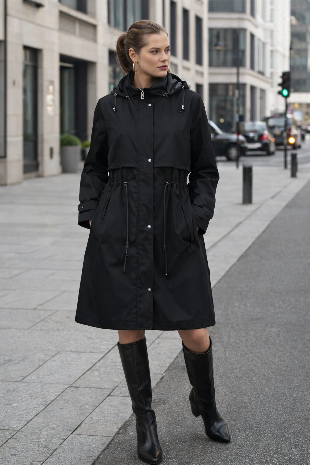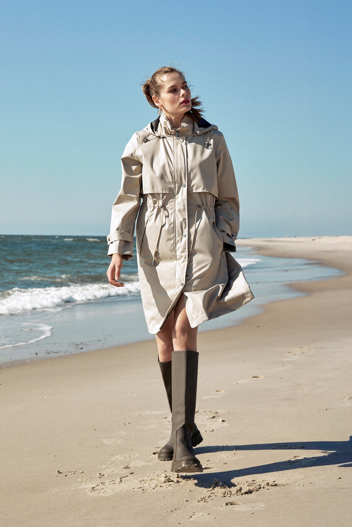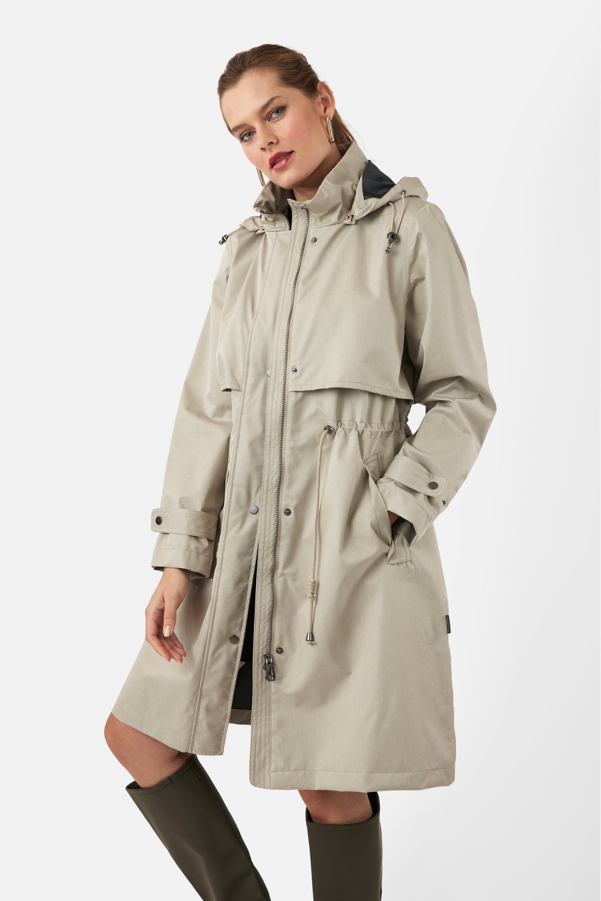 Frandsen - Nyomi regnjakki. Renndur og smelltur að framan, hár kragi, laus hetta, góðir vasar að framan, stillanlegt teygjuband í mitti, klauf að aftan. Jakkinn er vind- og vatnsheldur upp að 10.000 mm og andar, límdir saumar þannig að þú helst þurr.