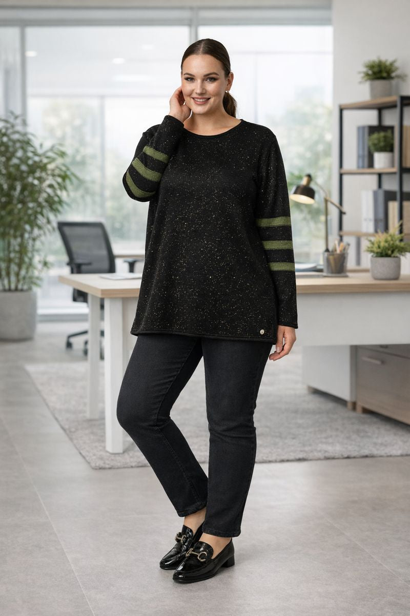 No Secret - Madison, Falleg og þægileg peysa með pallíettum, rúnað hálsmál, skrauttölur að aftan, rendur á ermum. Létt og hlý peysa með látlausu sniði og passar vel með flestu.