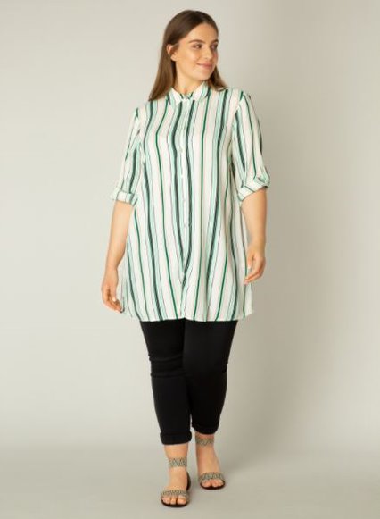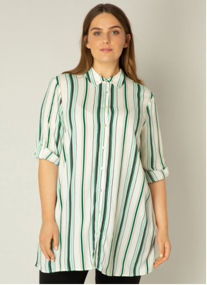 Yest - Röndóttur skyrtukjóll. Léttur og þægilegur, hnepptur alla leið niður og með skyrtukraga,