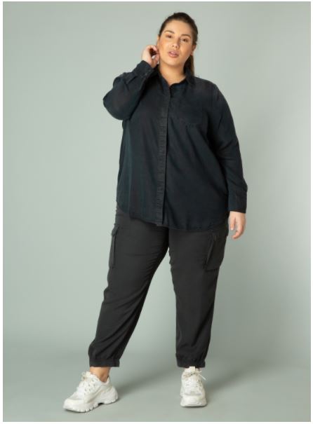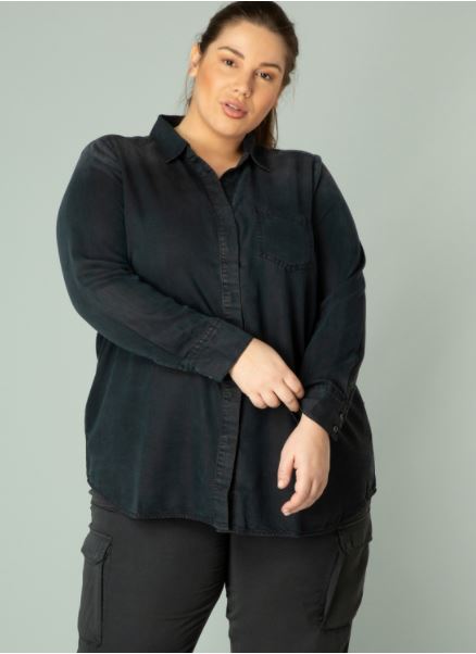 YestA gallaskyrta úr þvegnu svörtu Tencel efni. flottur með bol.