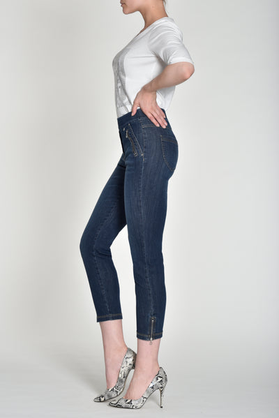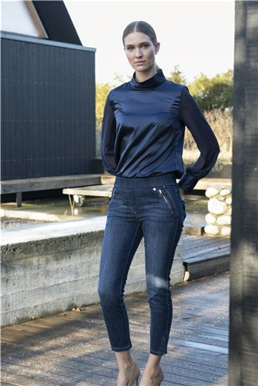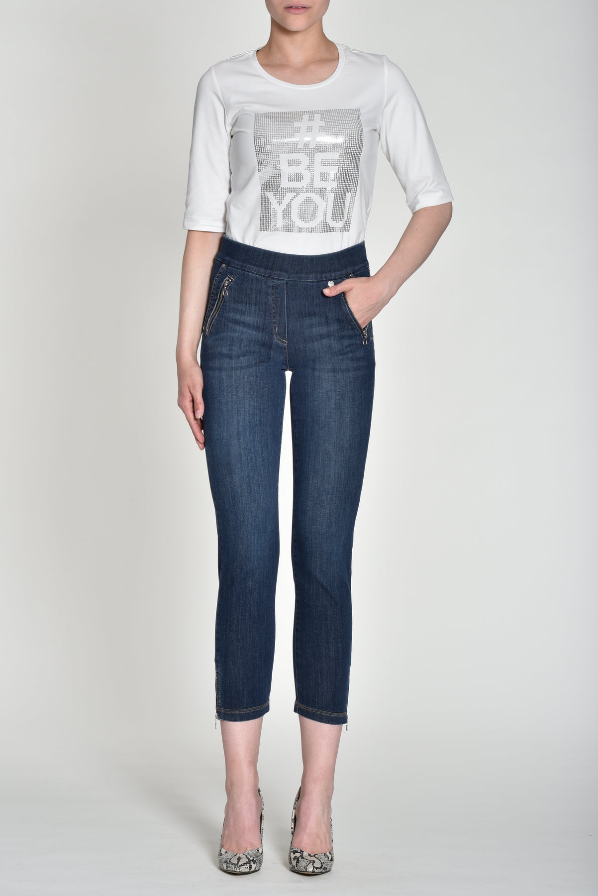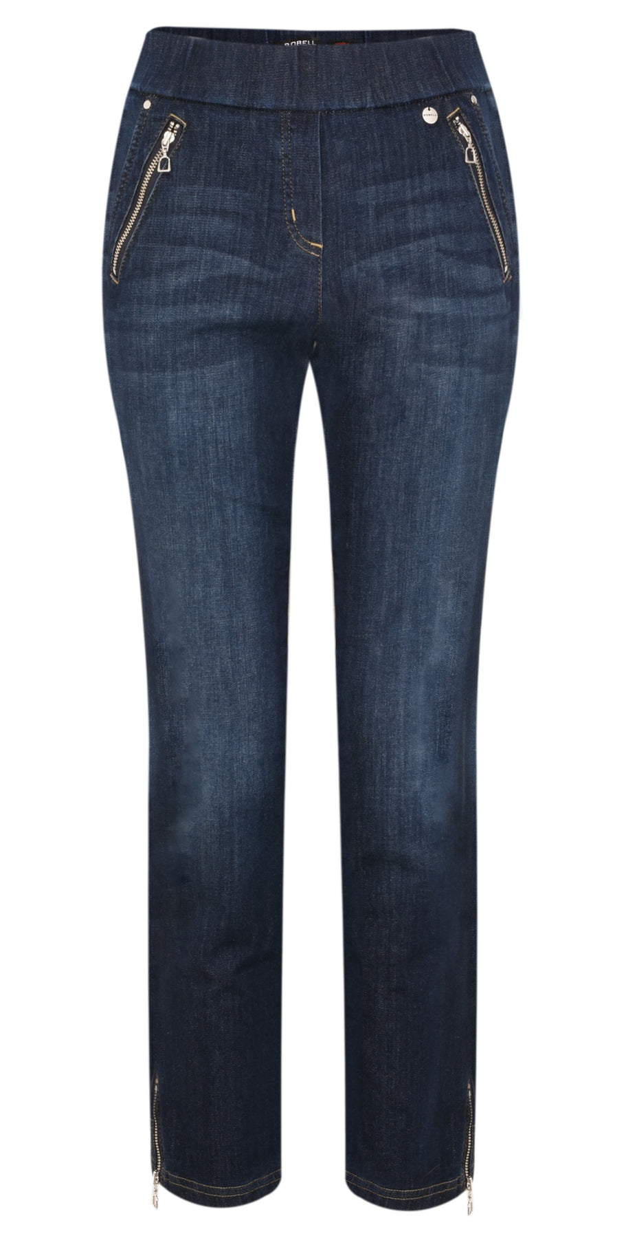 Robell - snið Nena 09, eru súperþægilegar ökklabuxur úr góðu gallaefni með breiðri teygju í mittið, renndir vasar að framan, rassvasar og rennilásar neðst á skálmum. Flottar og þægilegar buxur sem sitja vel, góðar stærðir. Henta vel fyrir konur sem vilja þægilegar og vandaðar buxur, sem passa við öll tækifæri.