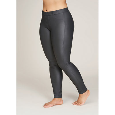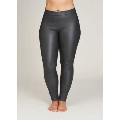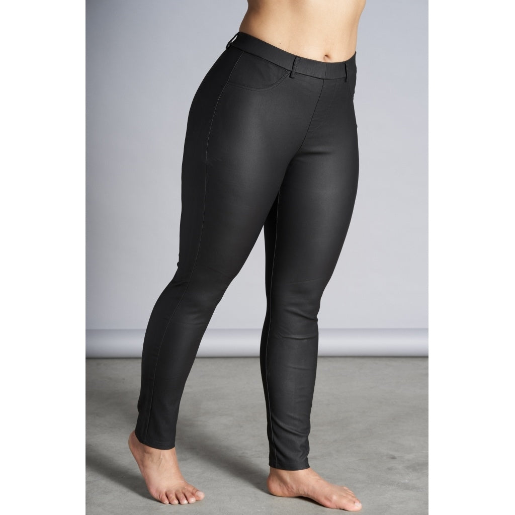 Sandgaard Basic - strechbuxur úr pleðurefni  "coated" með teygju í mittinu og lykkjum fyrir belti á strengnum.