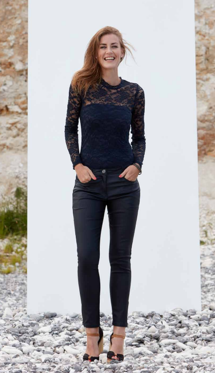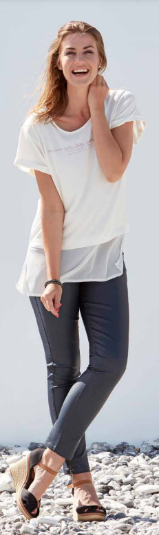 Ze-Ze Sanne 277 - Æðislegar pleðurbuxur frá Ze-Ze með tölu og rennilás að framan, lipurt súperstrech efni. Vasar að framan og aftan, og rennilás neðst á skálmum. Einstaklega þægilegar og passa vel með öllu.
