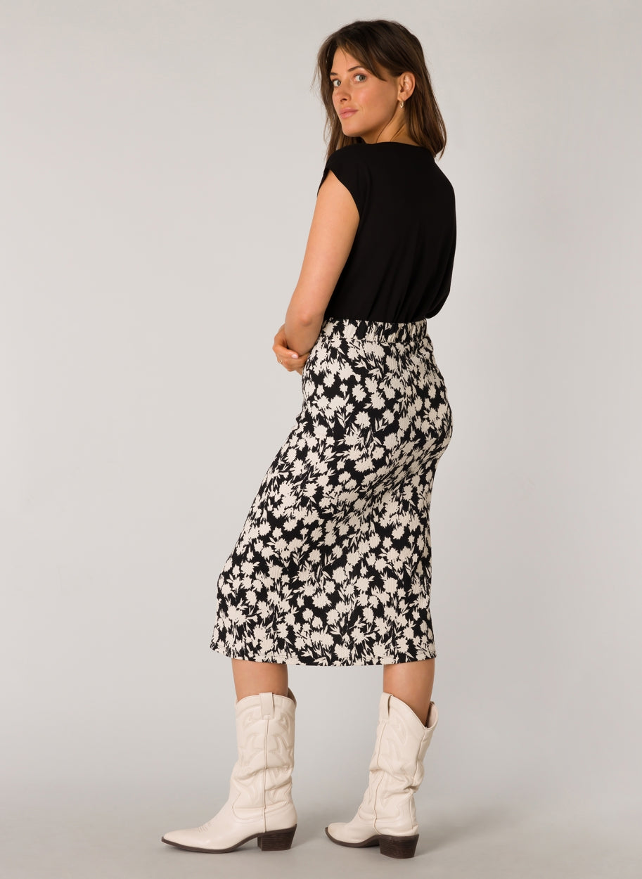 ES&SY hnésítt pils með off white blómum og teygju í mitti.
