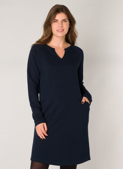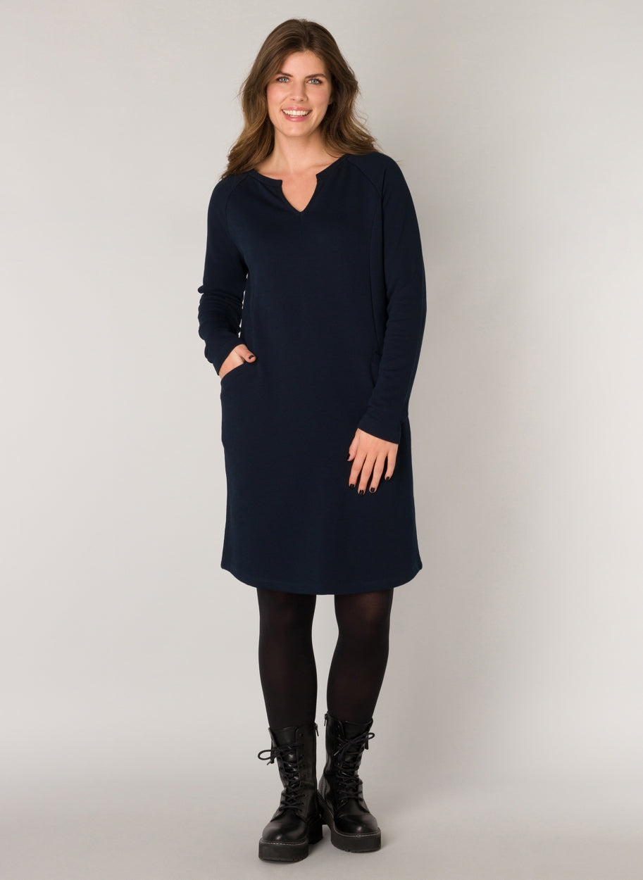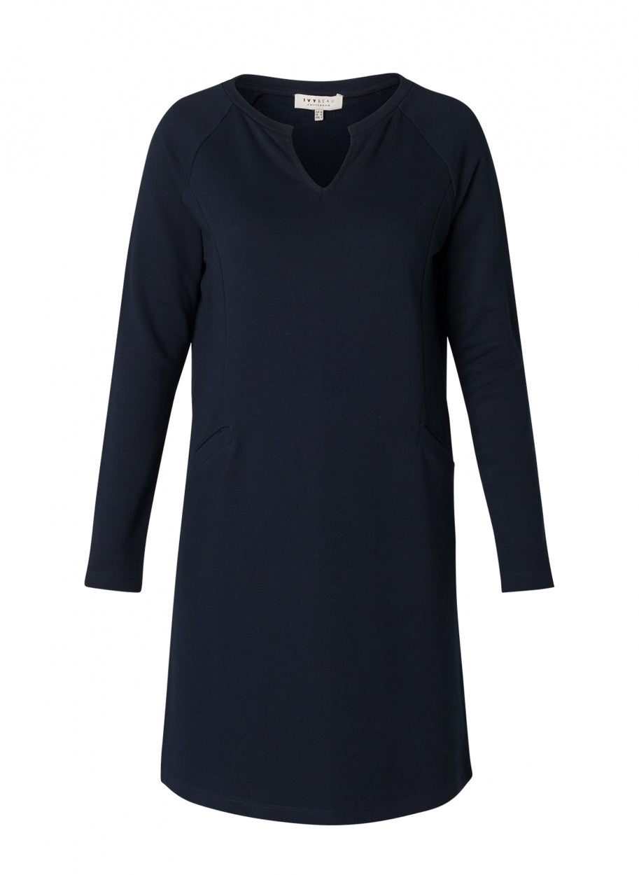 Ivy Beau - Zelma peysukjóll með síðum ermum, V-hálsmáli og hliðarvösum. Þessi flotti og mjúki peysukjóll er tilvalin fyrir kaldari daga.