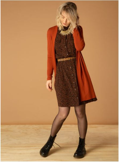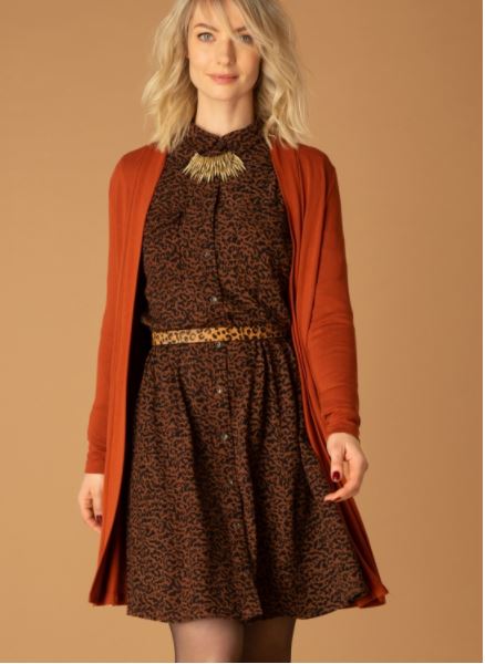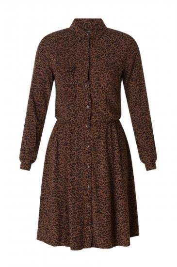 Yest, skyrtukjóll með kraga og löngum ermum, tekinn saman með teygjusaum í mitti.
