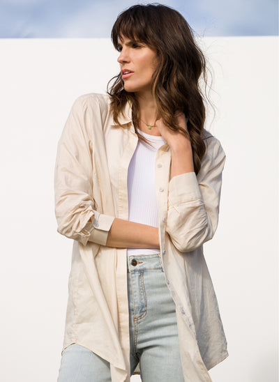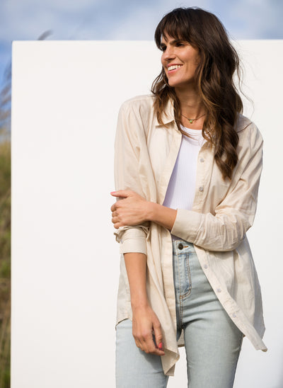 Yest - Marije síð skyrta með síðum ermum, kraga, hneppt alla leið og með tölu á ermum sem er hægt að festa upp. Passar vel við gallabuxur og treggings, einnig hægt að nota aðeins meira fínt líka, með bara hverju sem er.