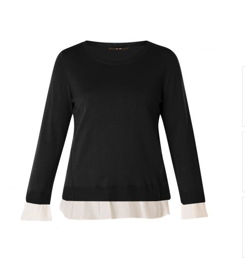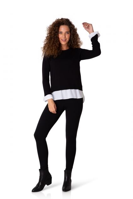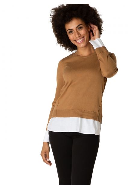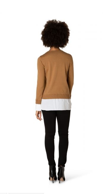 Yest peysa með áföstum skyrtukanntin neðst og skyrtuermum, lítur út eins og þú sért í skyrtu undir peysunni.