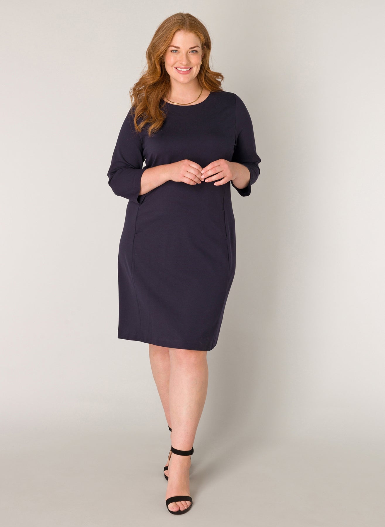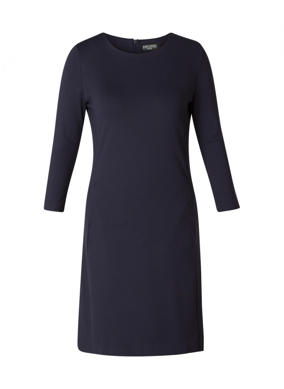 YestA - Base Level Curvy, látlaus og þægilegur kjóll með vösum að framan og rennilás í baki. Snið- Addy