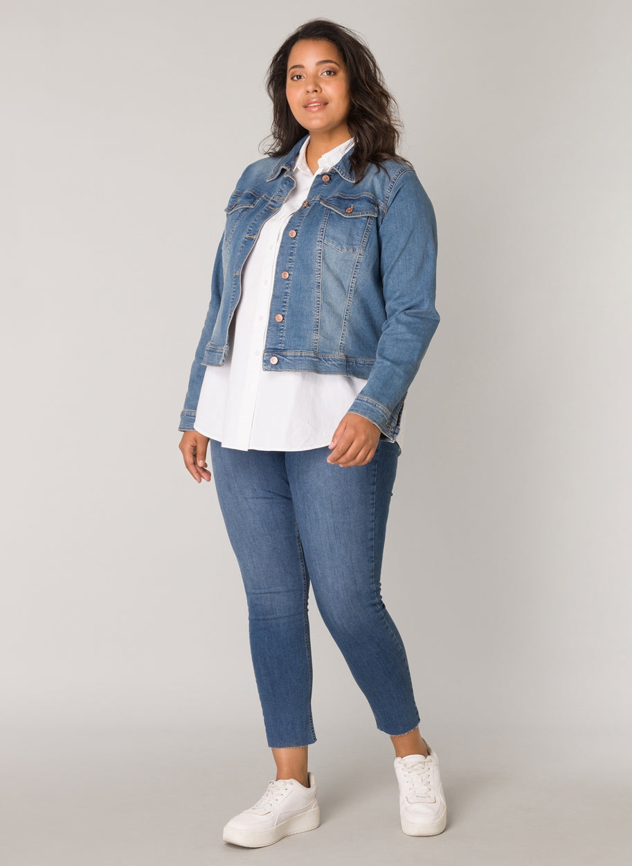 YestA - Base Level Curvy - Yamila basic gallajakki. frábær viðbót við dressið, hnepptur að framan, hægt að hafa hvort sem er opinn eða lokaðan, með góðum brjóstvösum, léttur og þægilegur og gott strech í efni. Notaðu Yamila yfir einfaldan bol eða síðan pífukjól og útkoman verður alltaf flott.