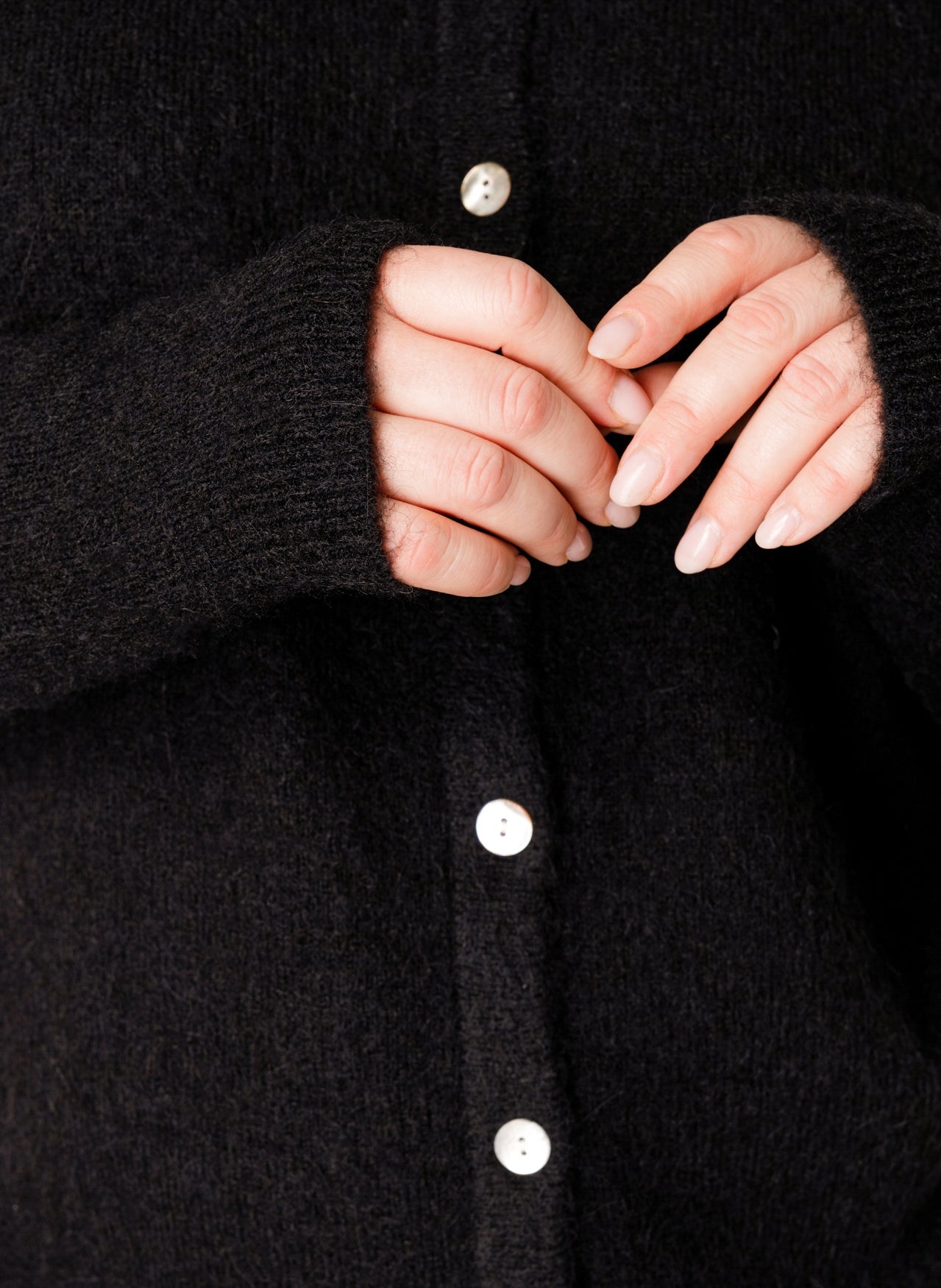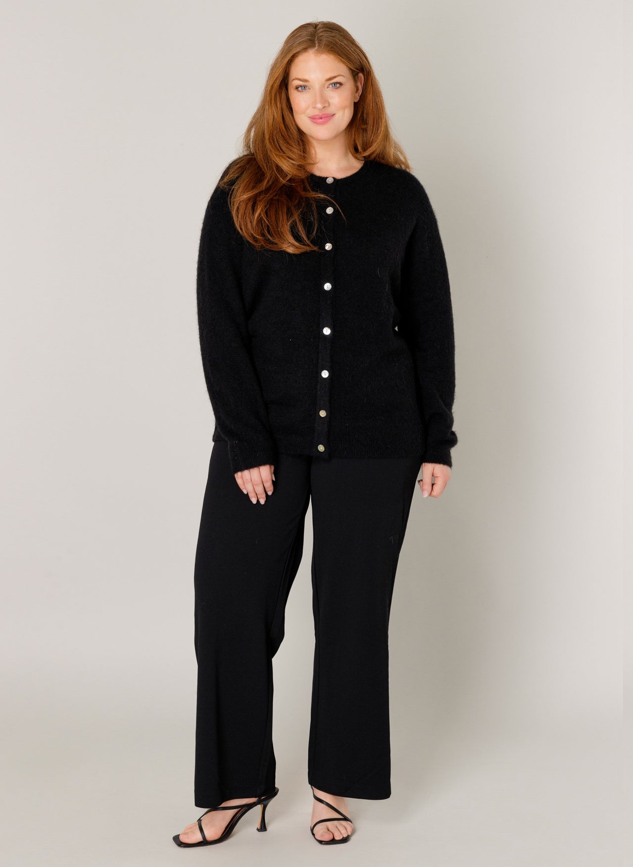 Yest Curve - Yulia mjúk og þægileg hneppt peysa. Langar ermar, stroff framan á ermum, rúnað hálsmál, hneppt að framan. Flott bæði sem hversdagspeysa sem passar vel við gallabuxur og treggings, hægt að nota aðeins meira fínt líka, með bara hverju sem er.