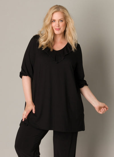 Colletta by YestA - Hattie flott og þægileg tunika. Kvartermar með teygju neðst, V-hálsmál. Passar vel hvar sem er, bæði hversdags og spari.