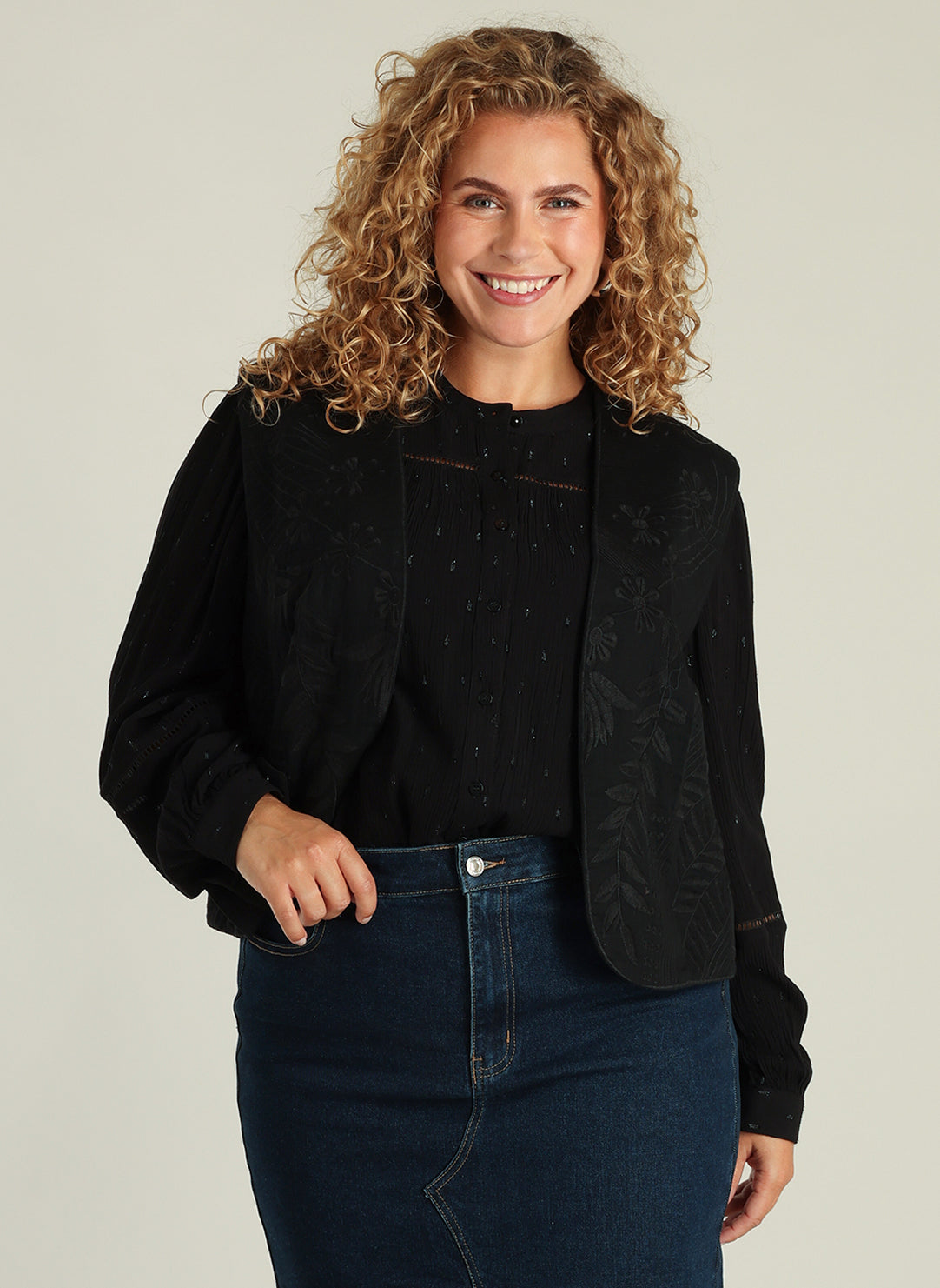 Yest Curve - Gwendolyn flott og sparileg vesti með útsaumuðu mynstri. Mjúkt og þægilegt, flott yfir skyrtur eða boli og hægt að nota spari eða hversdags.