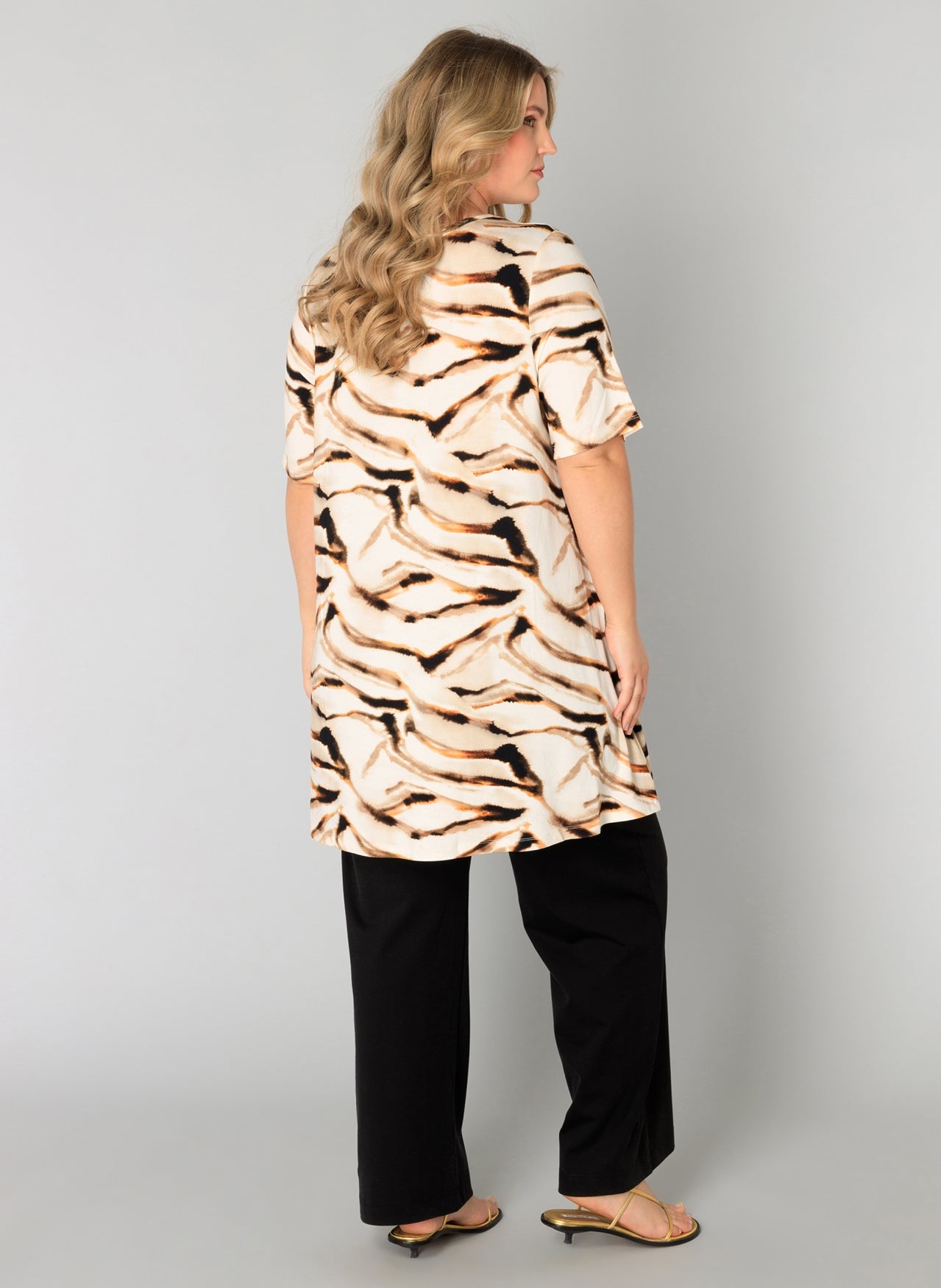 YestA - Ankie Essential - stutterma tunika beige mynstur og hlébarðamynstur