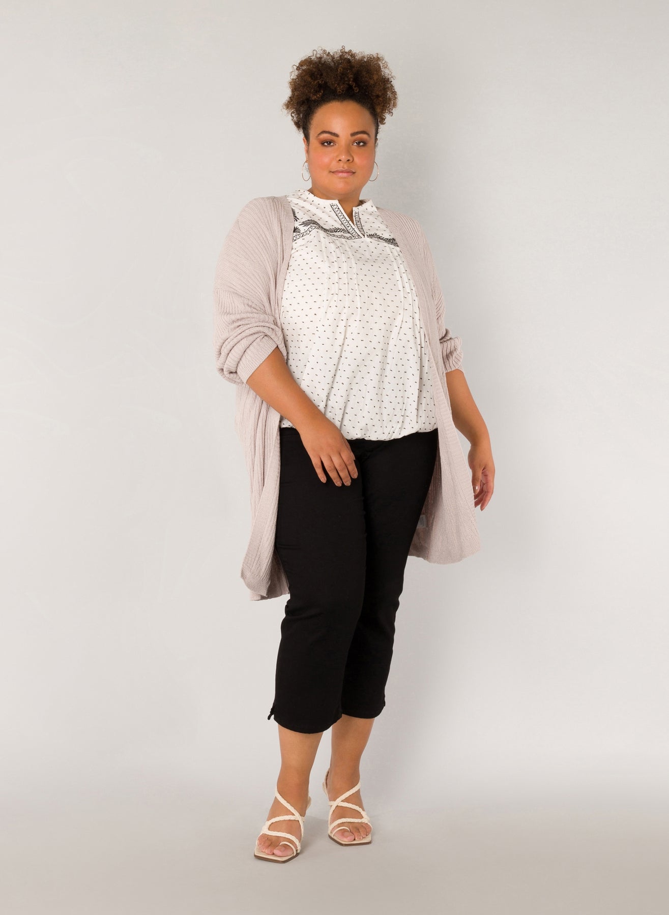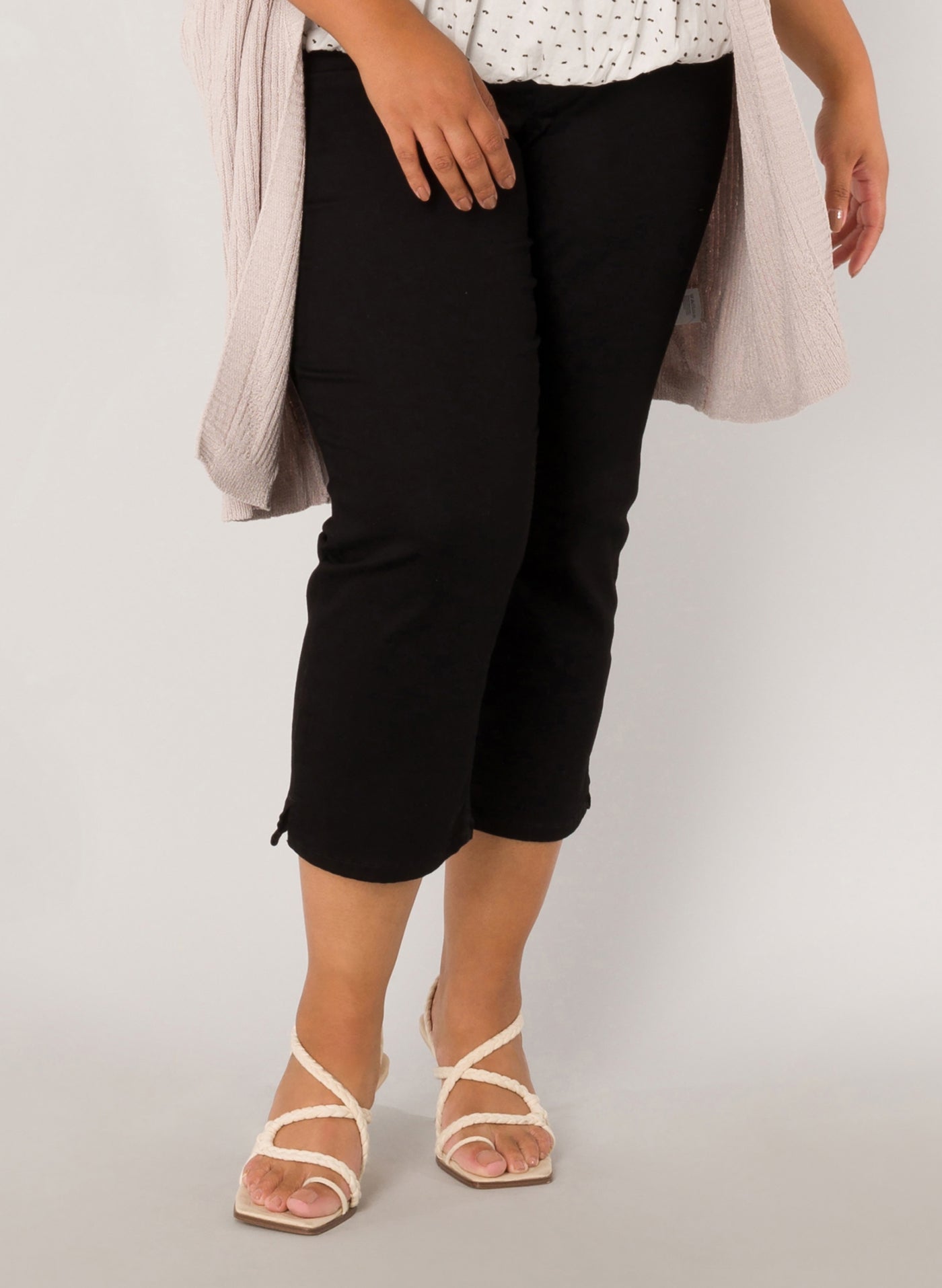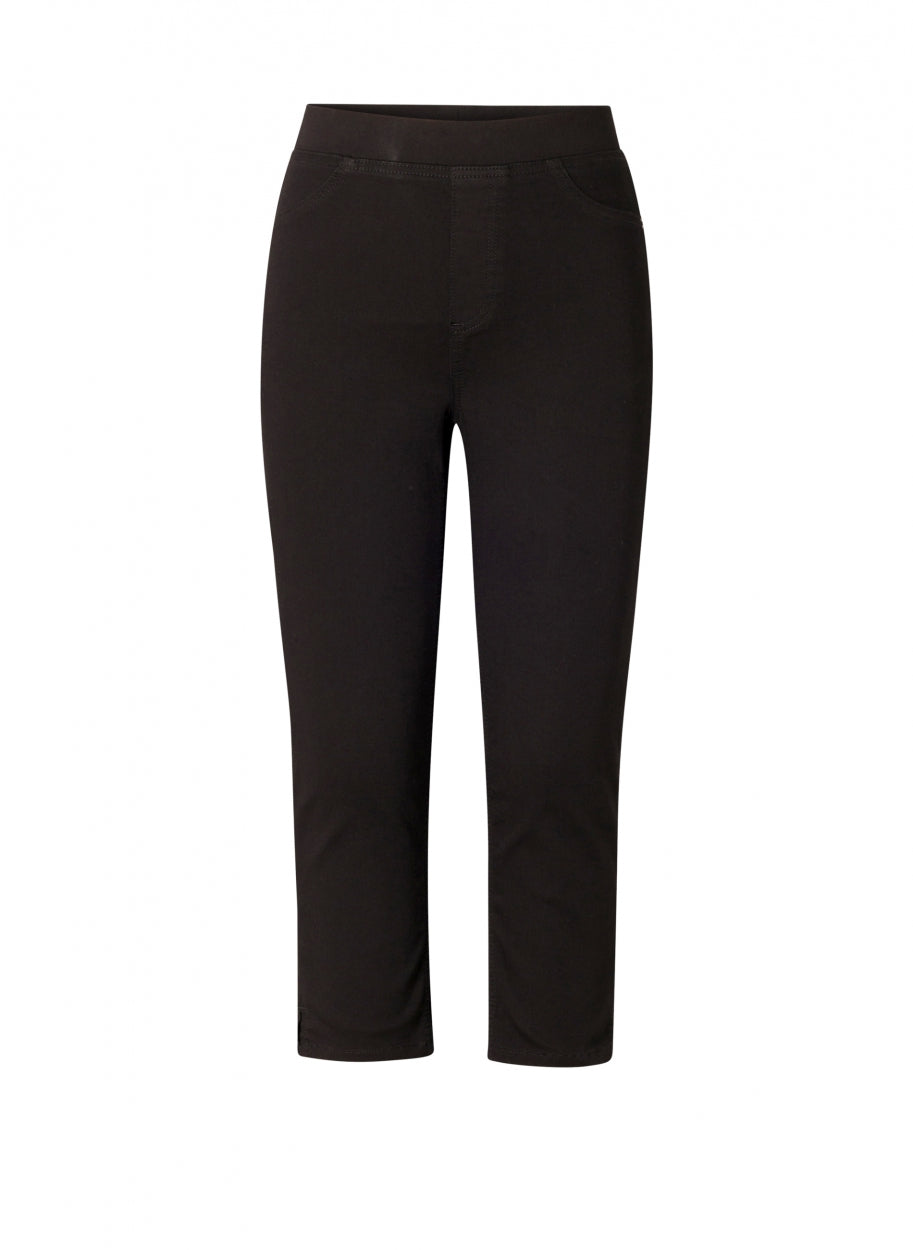 YestA - Hanna Flottar og þægilegar kvartbuxur úr superstrech gallaefni með teygju í mittinu. Skraut vasar að framan og venjulegir vasar að aftan. Frekar beinar niður með smá klauf neðst á skálmum.