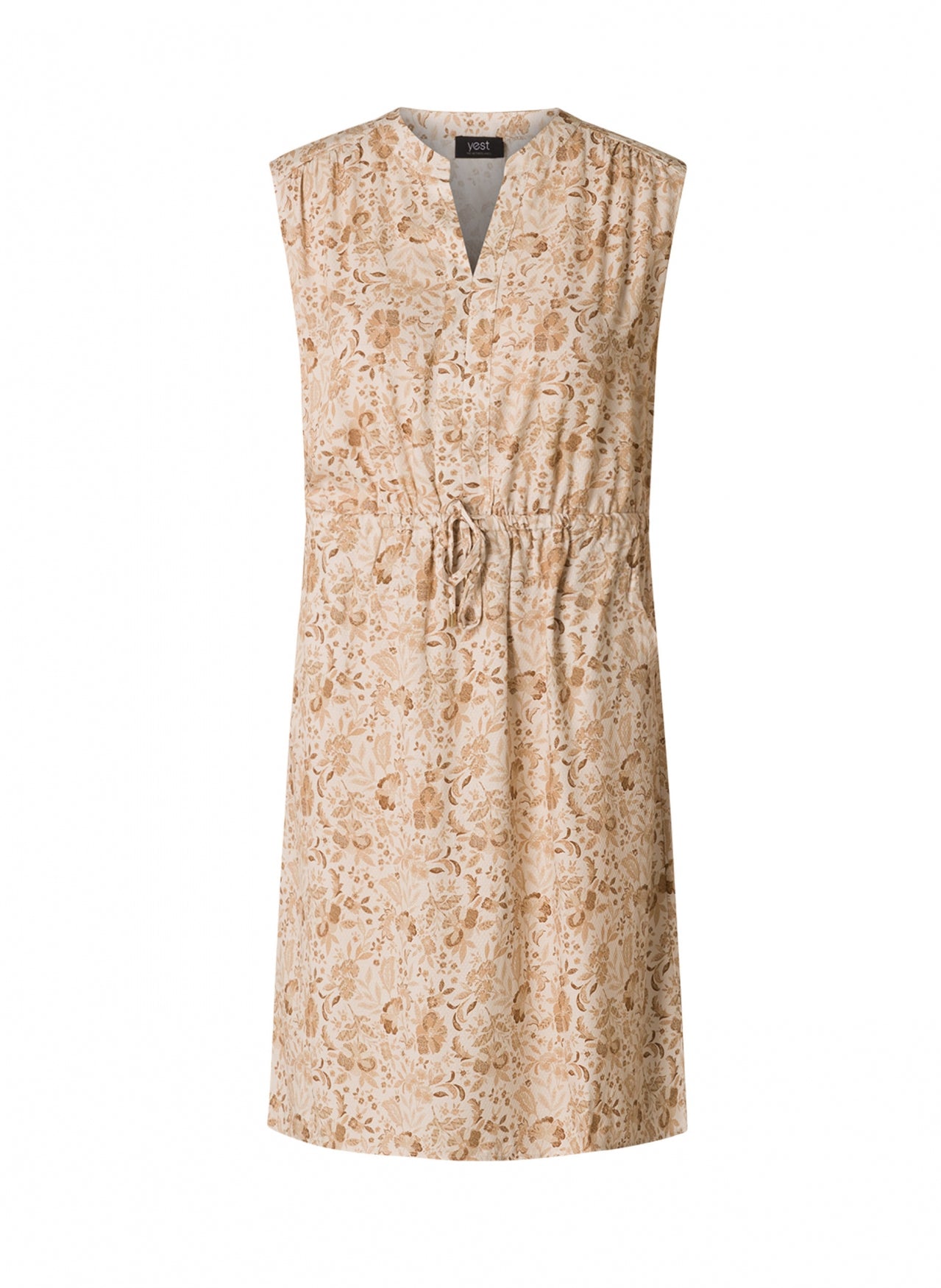 YestA Jane Essential - Fallegur ermalaus kjóll með blómamynstri, rúnuðu hálsmáli, strengur í mittið sem hægt er að draga saman og hliðarvasar.