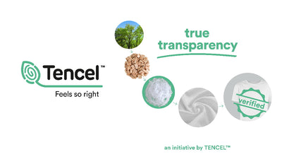 Tencel er umhverfisvænt efni unnið úr viðarkvoða. Efnið er létt, mjúkt og þæginlegt, andar vel og heldur sér köldu.