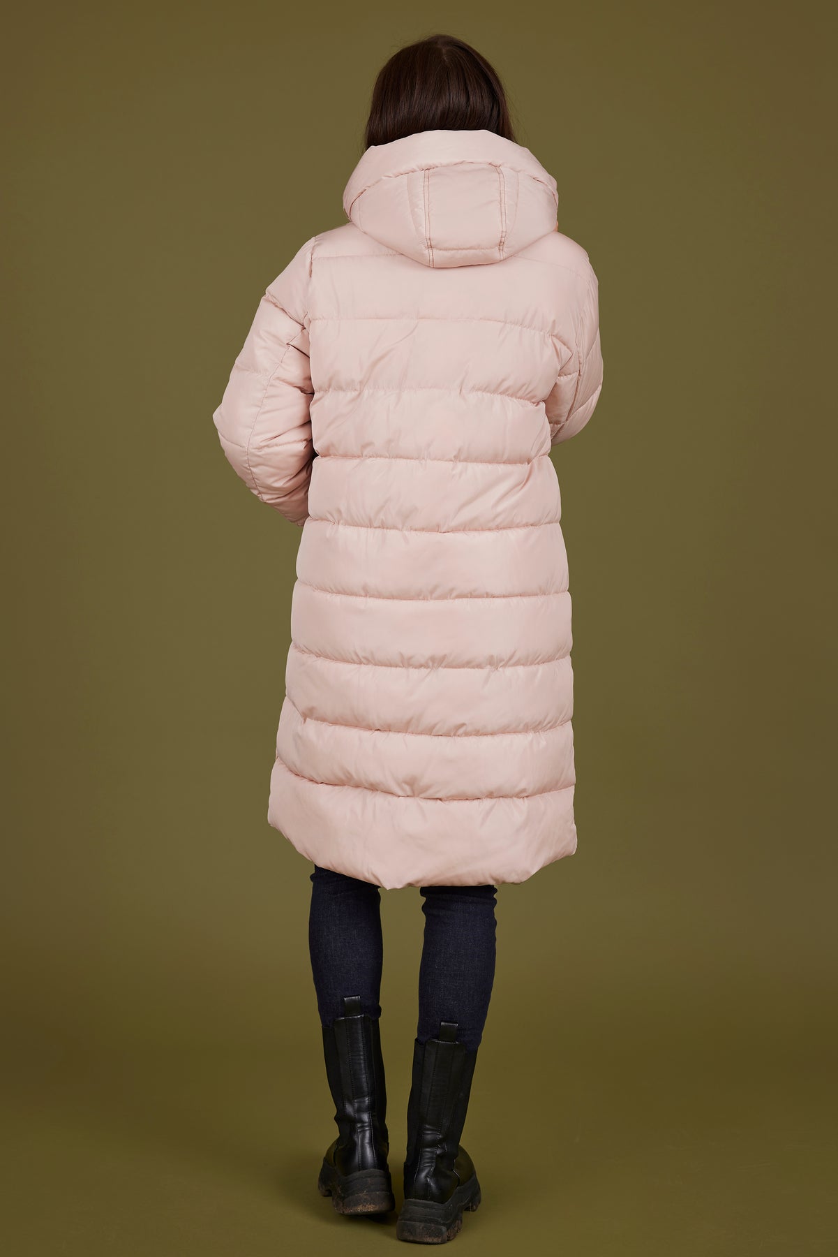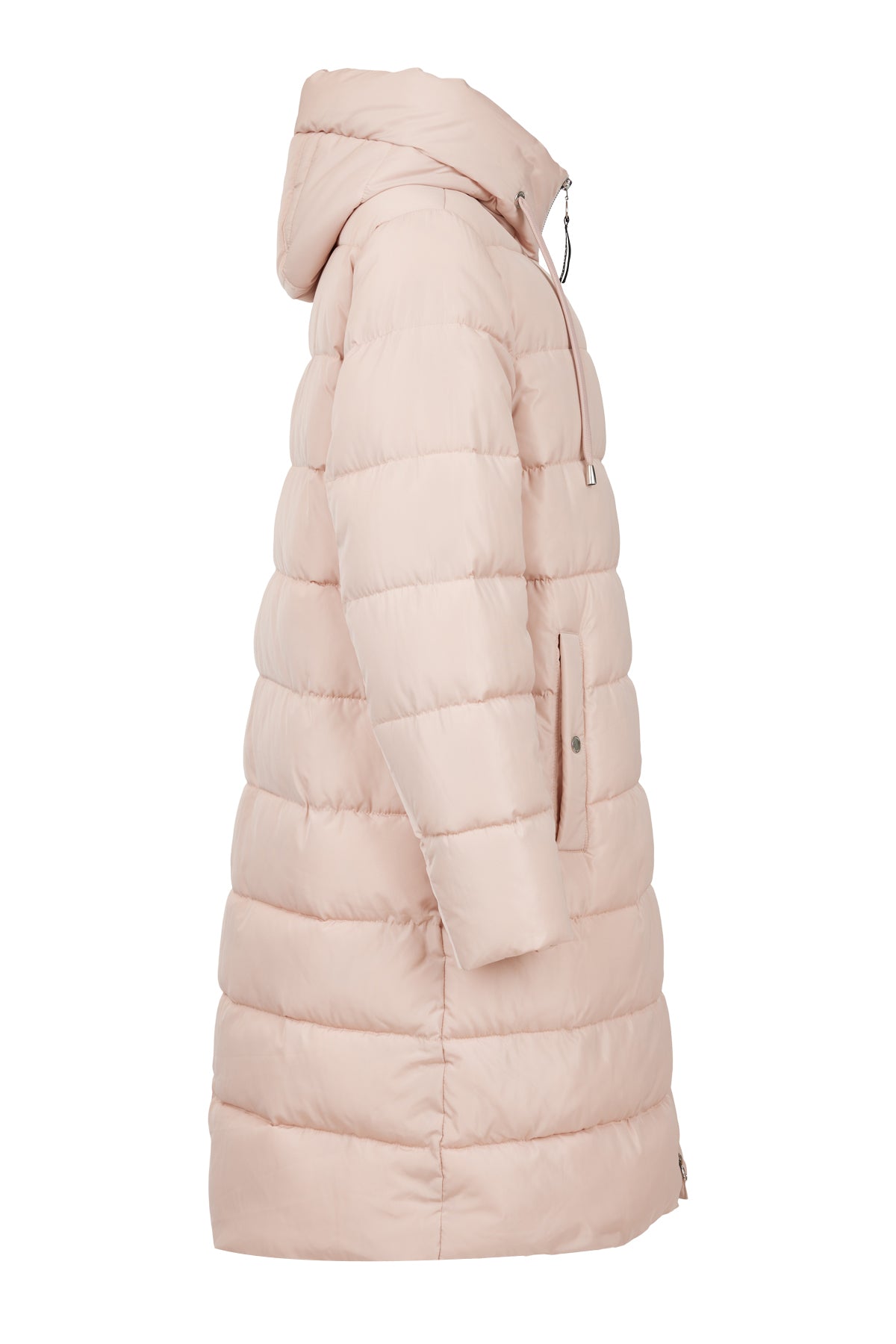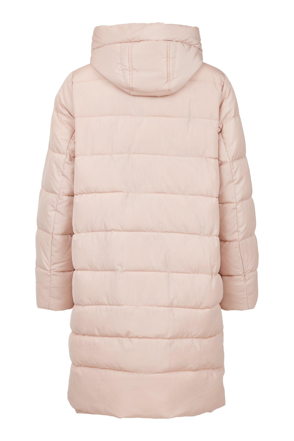 Normann - Amiya síð úlpa með technical down fyllingu sem er eins konar dún-líki, gervidúnn sem hefur sömu eiginleika og alvöru dúnn. Vatnsfráhrindandi efni, gott snið, rennilás í báðar áttir að framan, góðir hliðarvasar með smellu, hár kragi, áföst hetta með böndum til að draga saman. Góð fyrir veturinn.