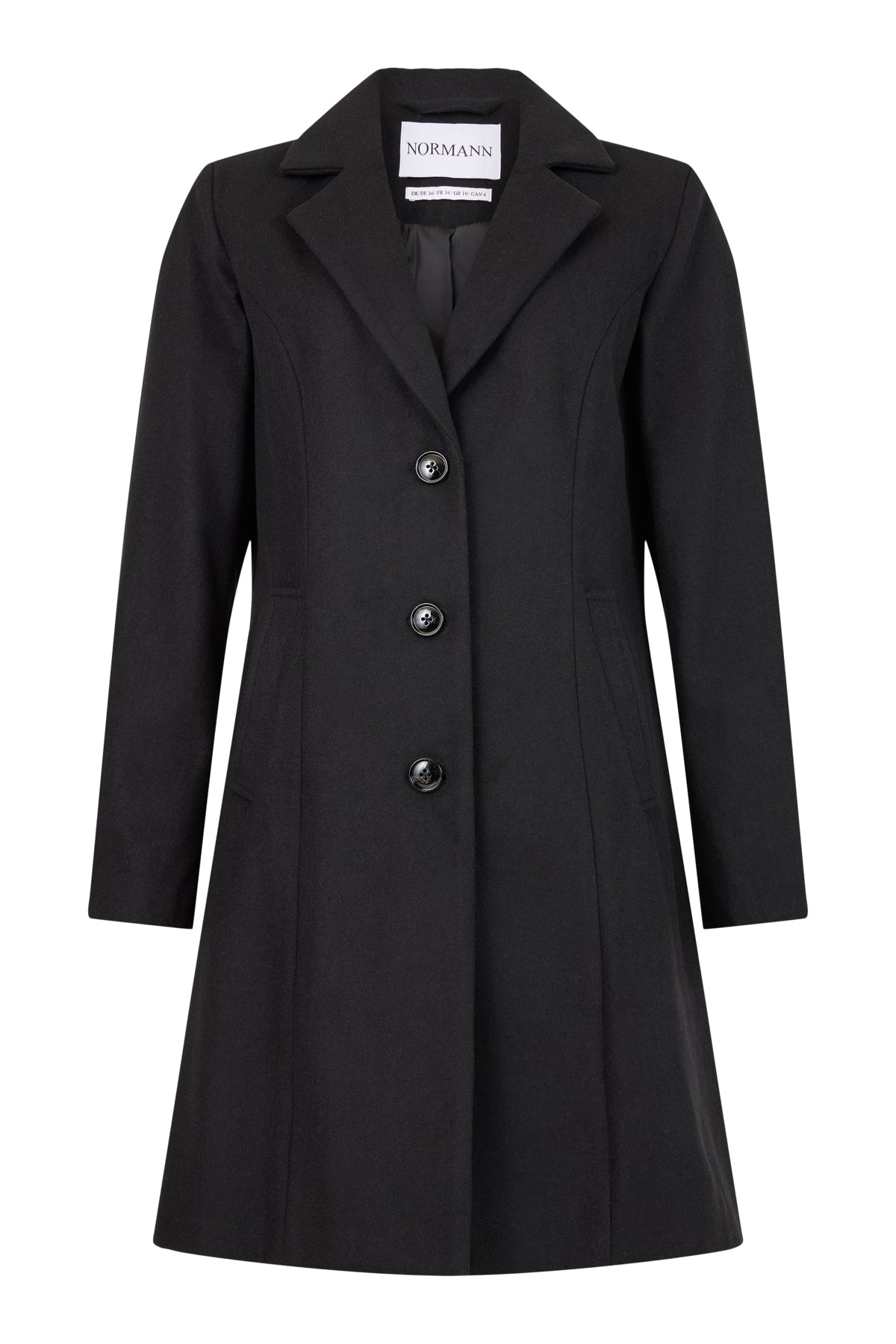 Normann - Shayna flott og sparileg kápa. Hneppt að framan, góðir vasar, fóðruð, klauf að aftan. Fullkomin fyrir hvaða tilefni sem er.