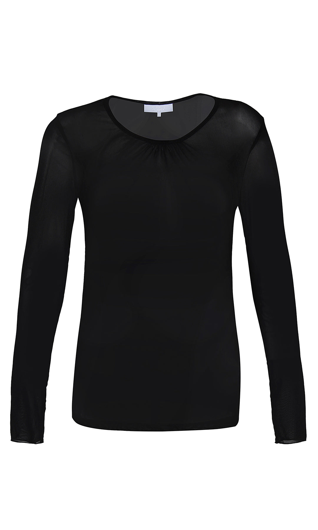 Ze Ze - Dandie mesh langermabolur úr teygjuefni. Rúnað hálsmál og smá rykking að framan. Flottur undir alls konar ermalausa kjóla eða tunikur eða yfir topp.