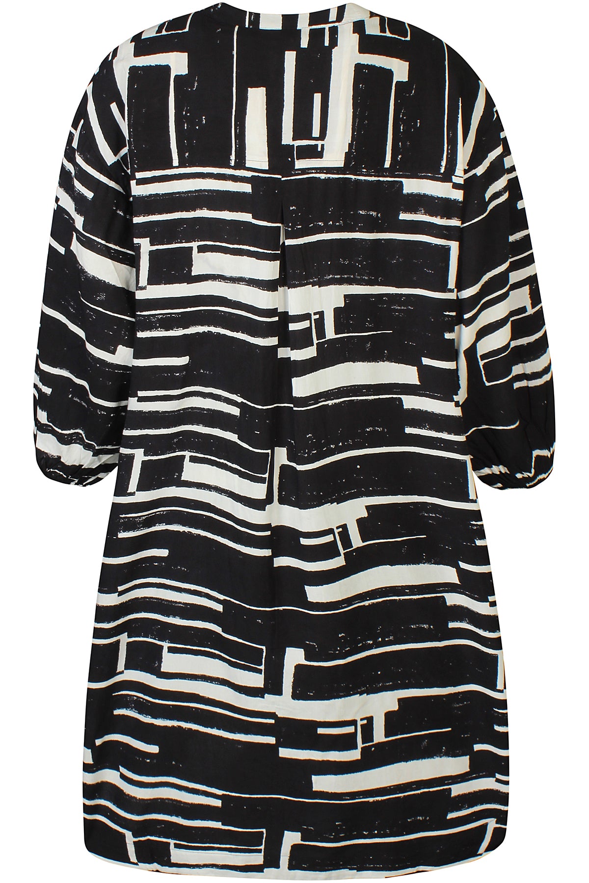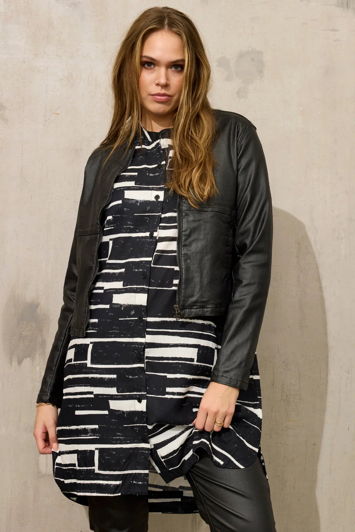 Fallegt svart og hvítt mynstur og gott snið - síða skyrtu er líka hægt að nota opna yfir hlýrabol.