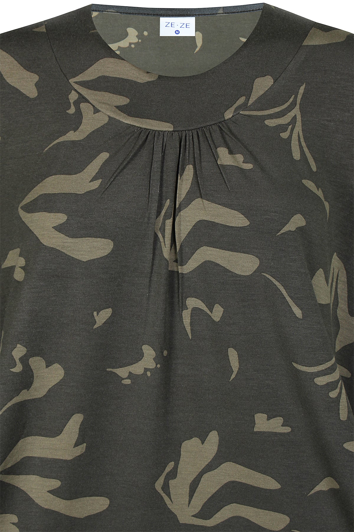 Ze-Ze - Aurora flott og þægileg tunika með látlausu mynstri, kvartermum og rúnuðu hálsmáli með rykkingu. Passar vel við t.d. leggings, treggings eða gallabuxur.
