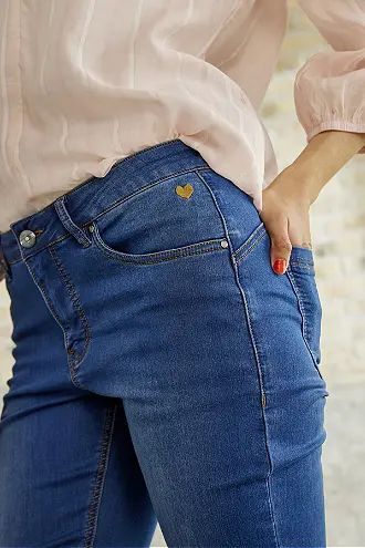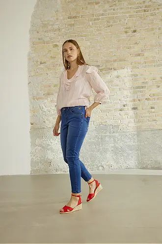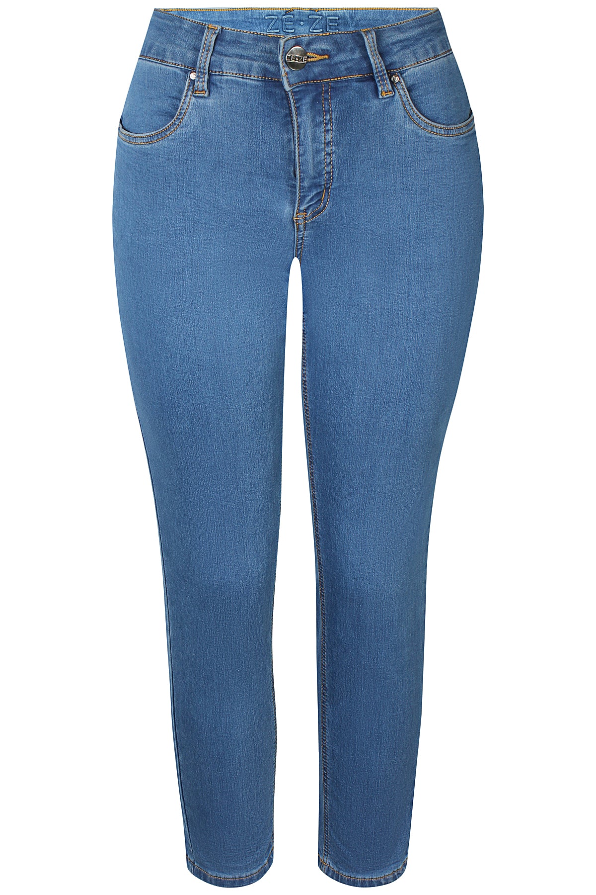 Ze-Ze - Katey flottar gallabuxur í ökklasídd, lipurt og þægilegt gallaefni, með tölu og rennilás að framan, háar í mitti og vasar bæði að framan og aftan.
