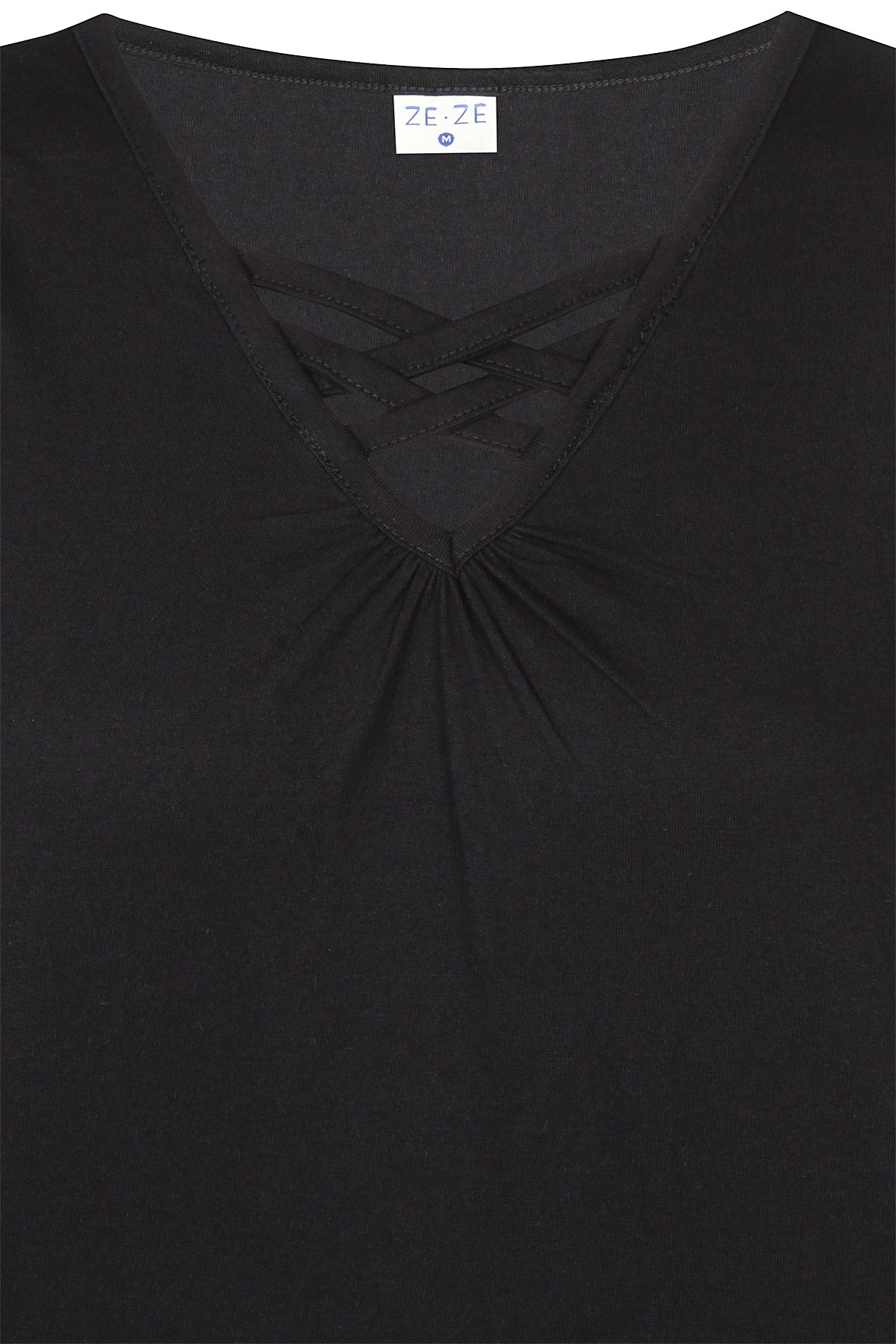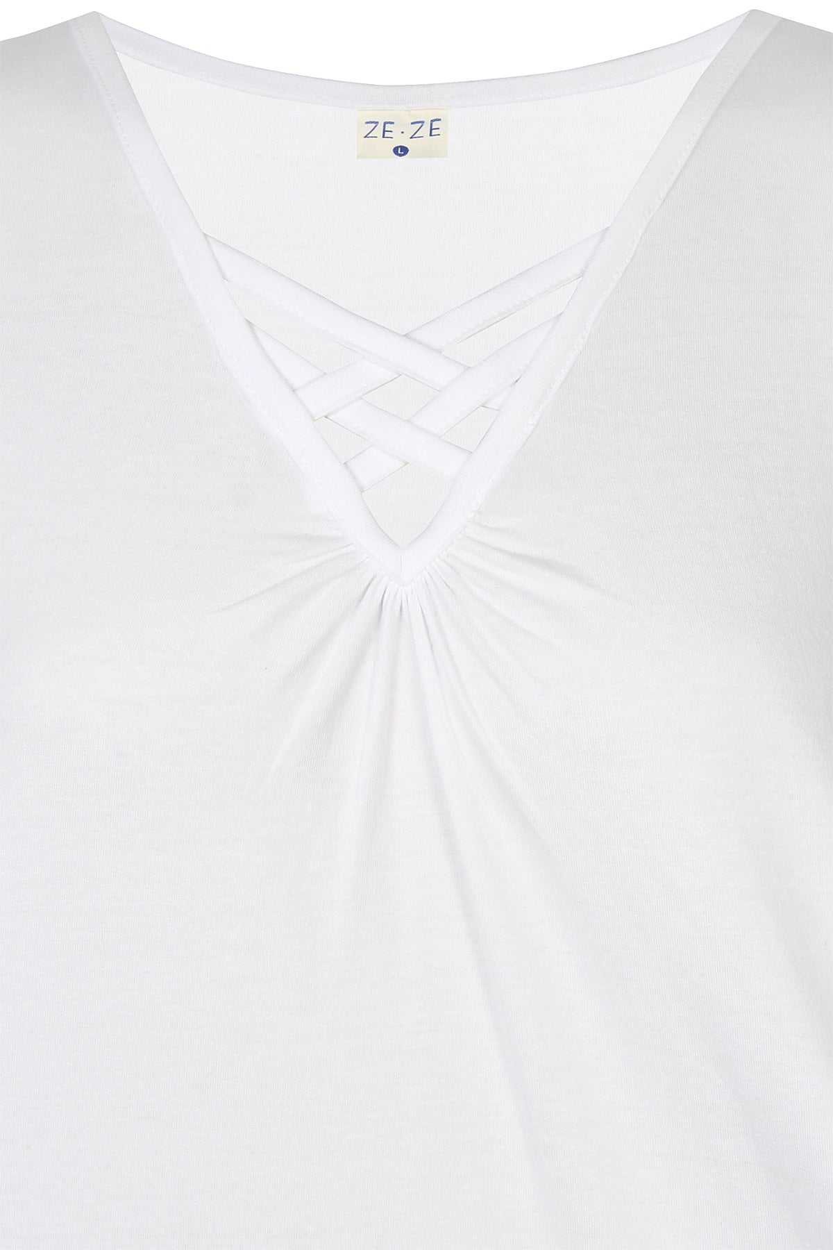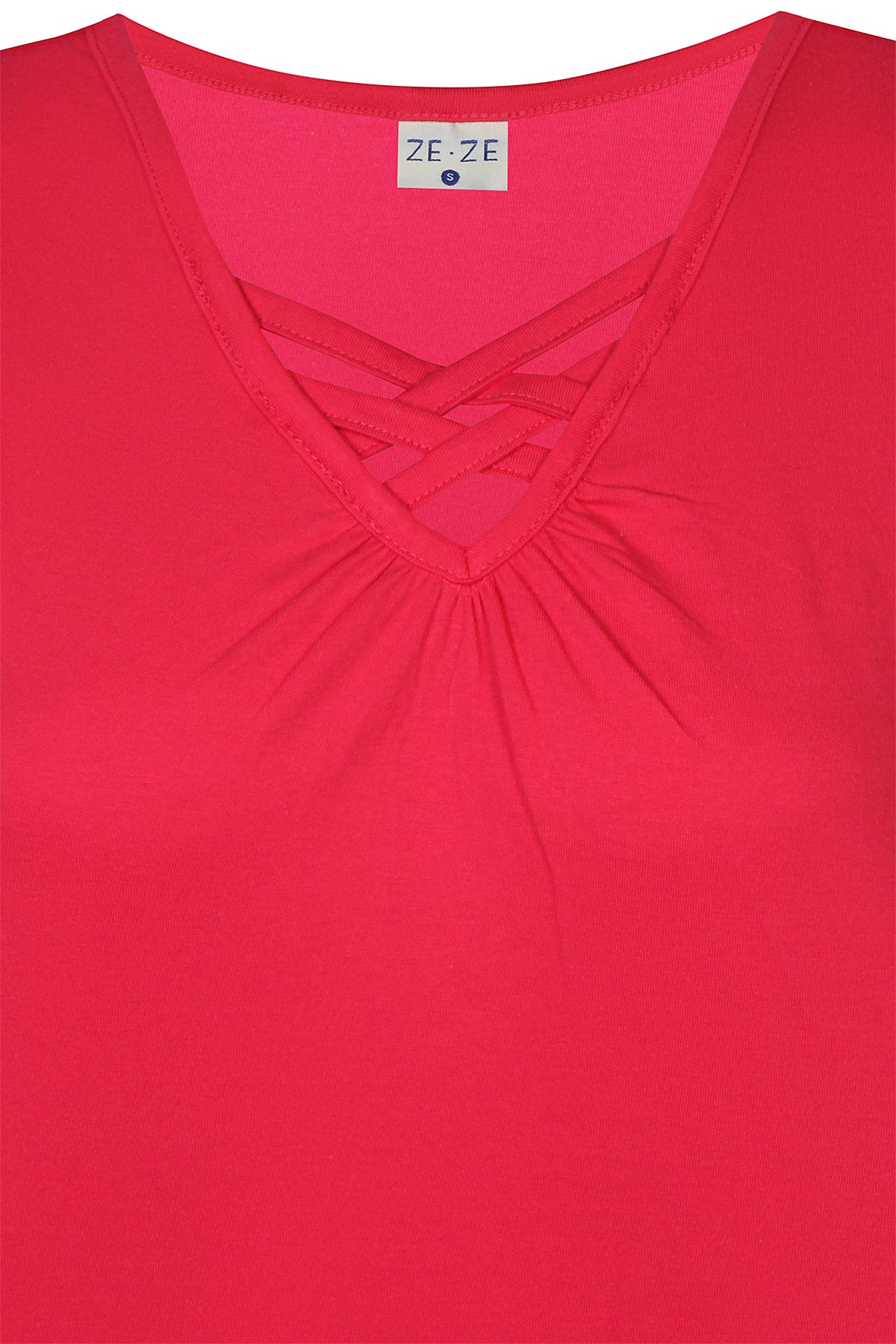 Ze-Ze - Luna 655 flottur og þægilegur toppur með böndum og rykkingu í hálsmáli. Breiðir hlýrar og V-hálsmál. Tilvalinn undir opnar blússur og peysur eða einn og sér.