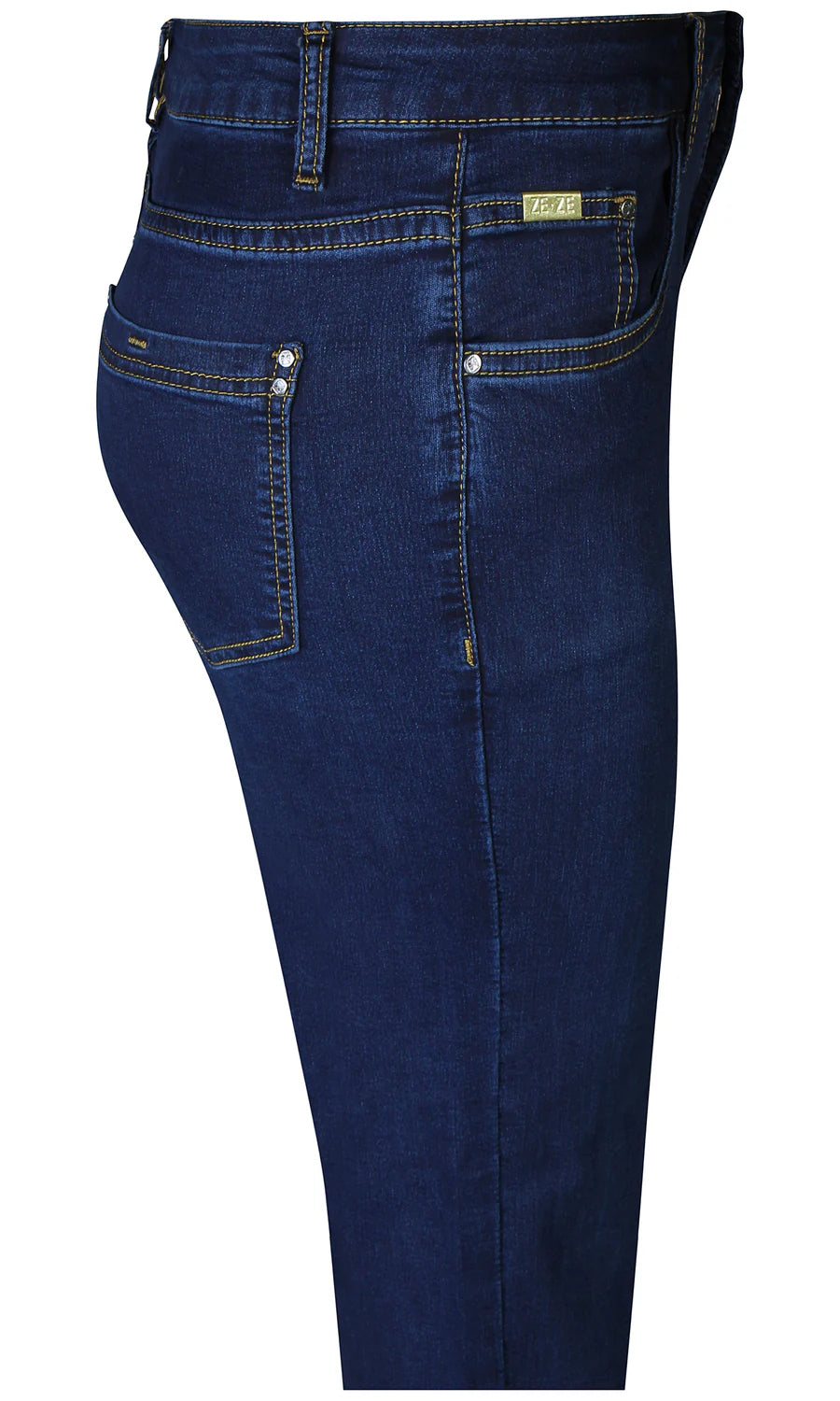 Flottar gallabuxur frá Ze-Ze í Ruby sniði með tölu og rennilás, skálmar beinar niður, lipurt og þægilegt gallaefni með góðri teyjgu í efni. Opnir vasar að framan og aftan.