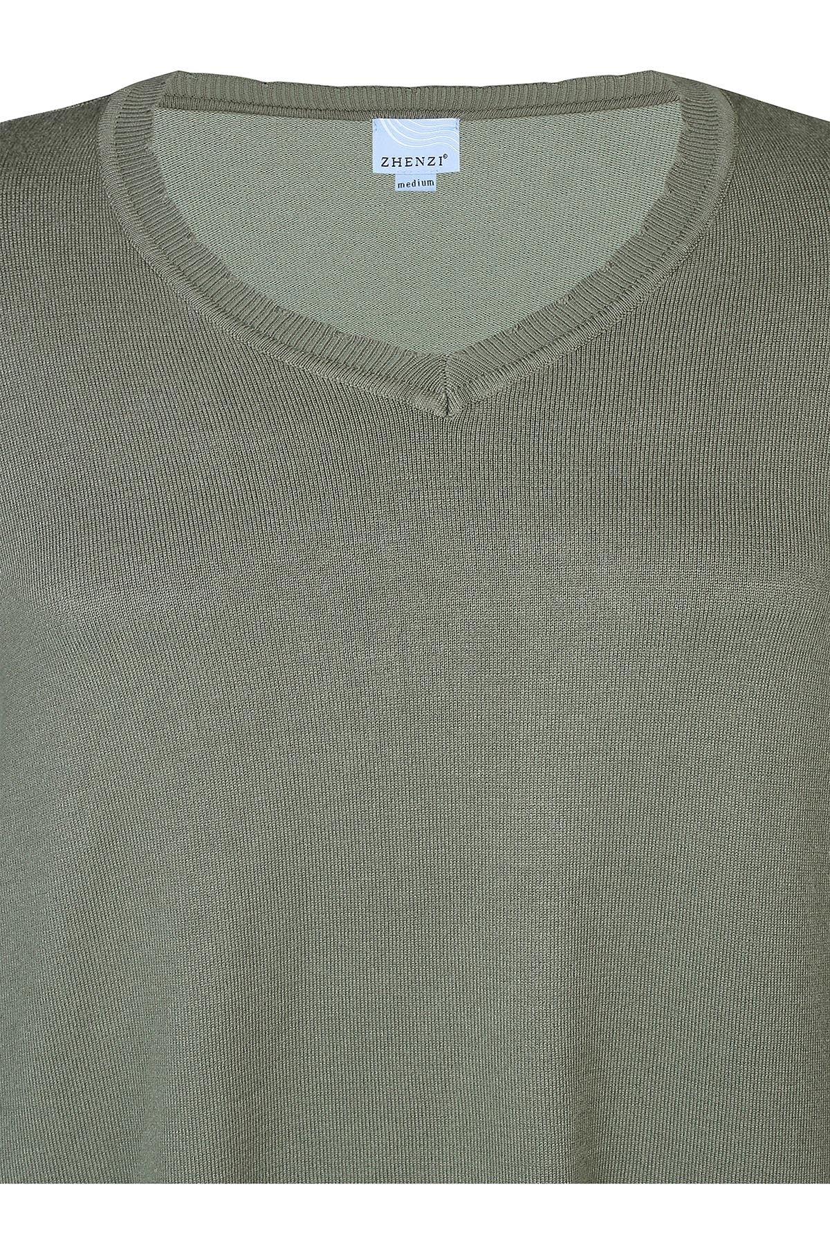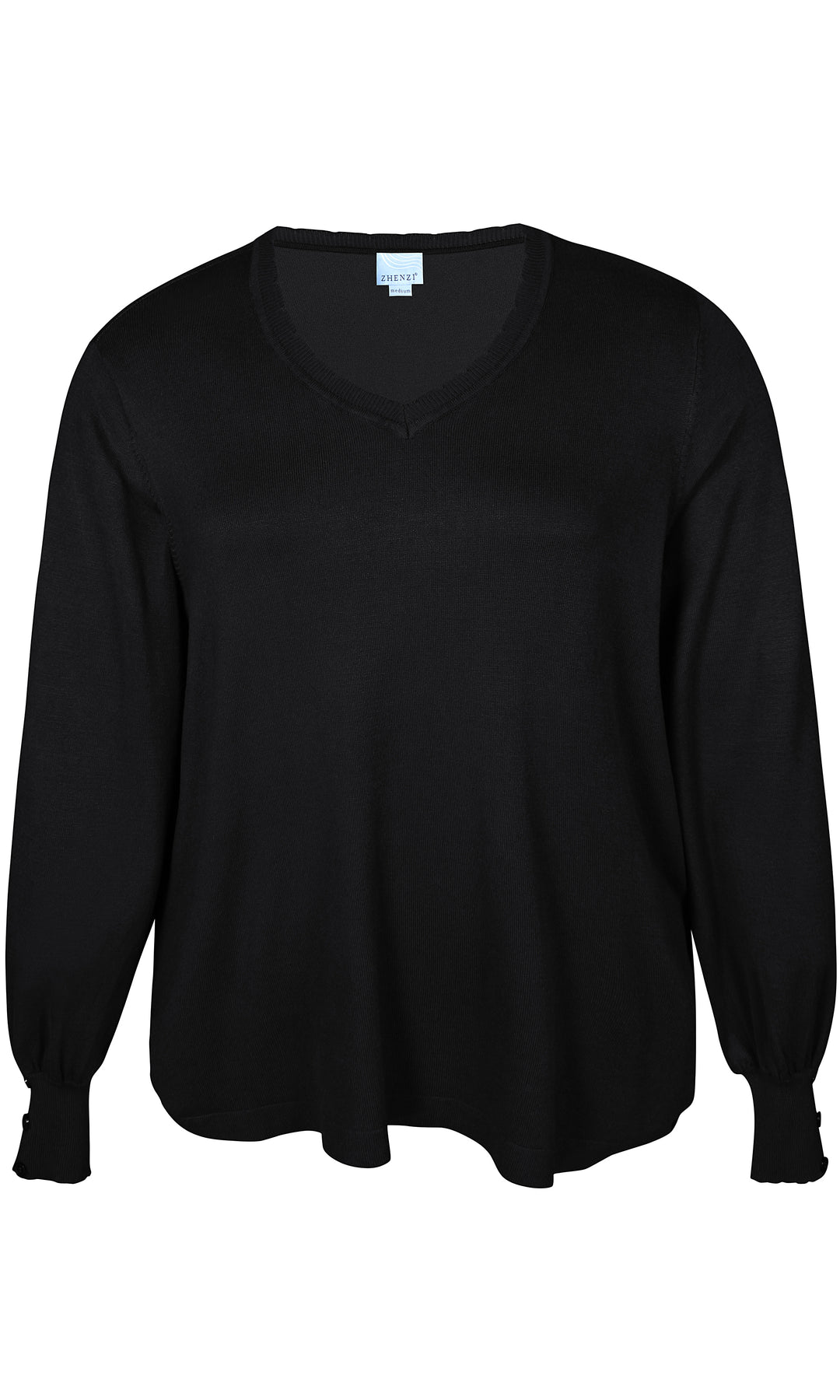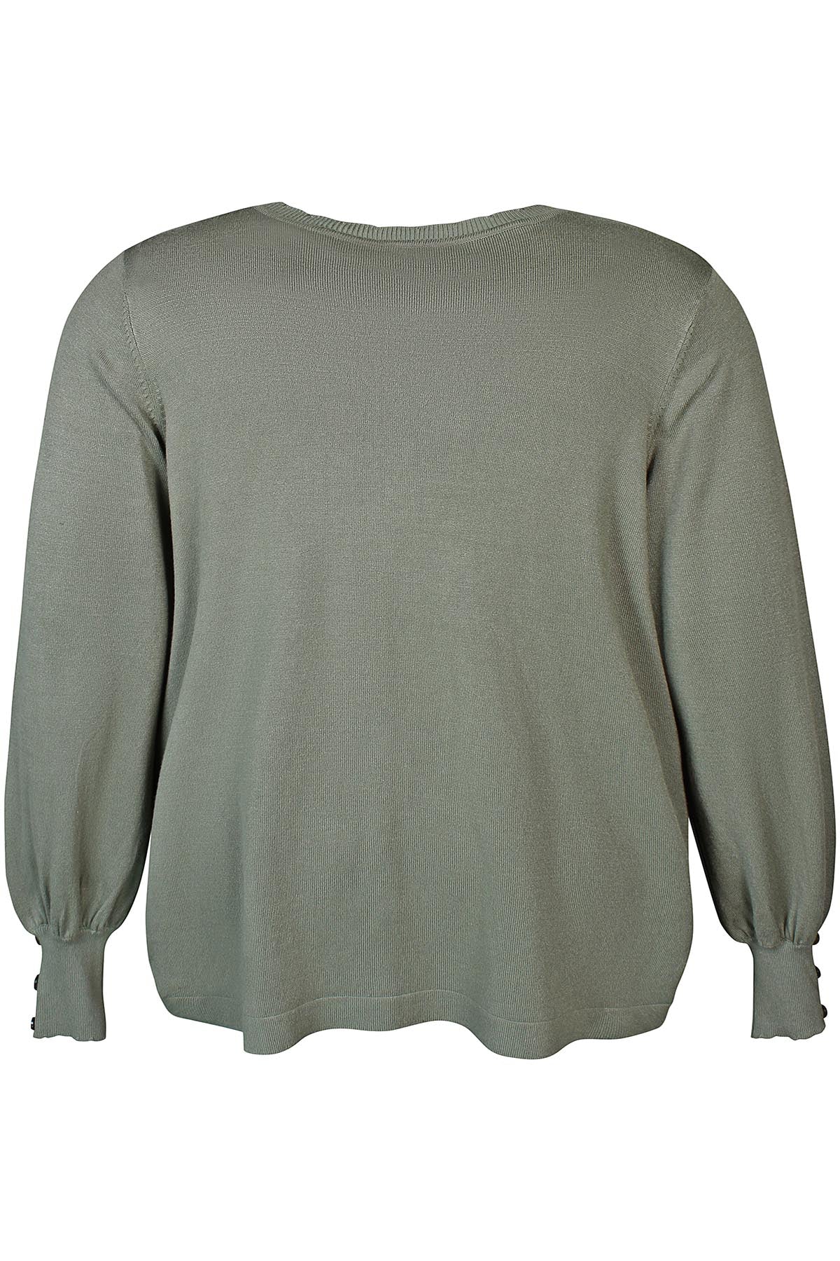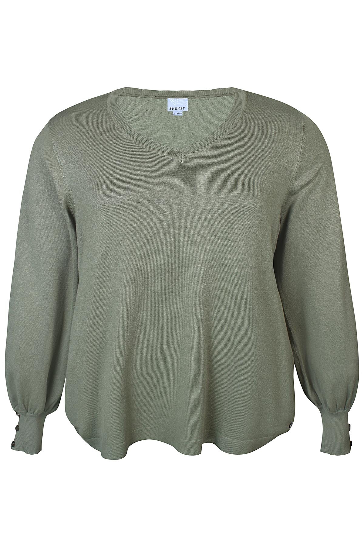 Zhenzi - Kogle mjúk og þægileg peysa með V-hálsmáli og síðum ermum. Skraut tölur á ermum, rúnuð að neðan.