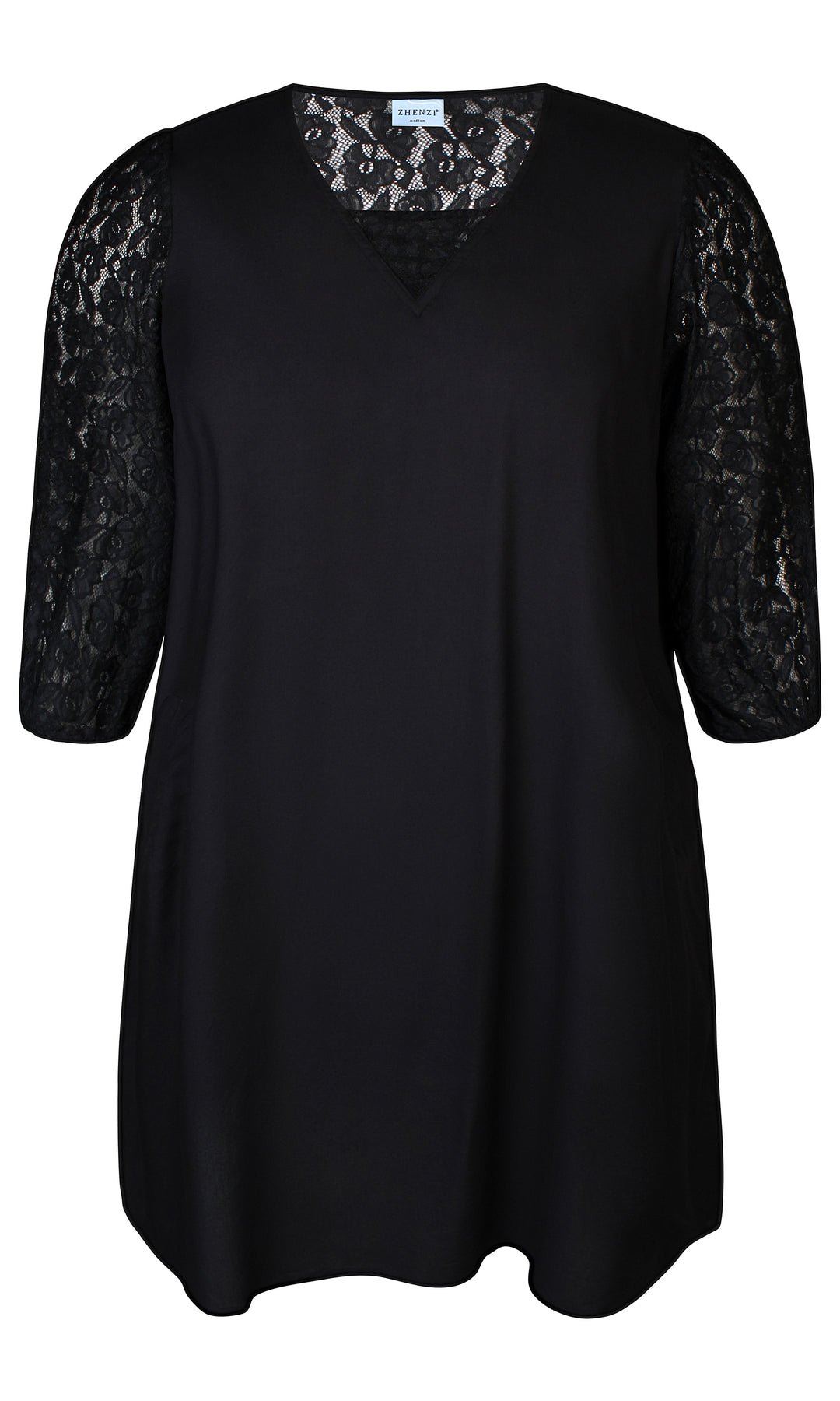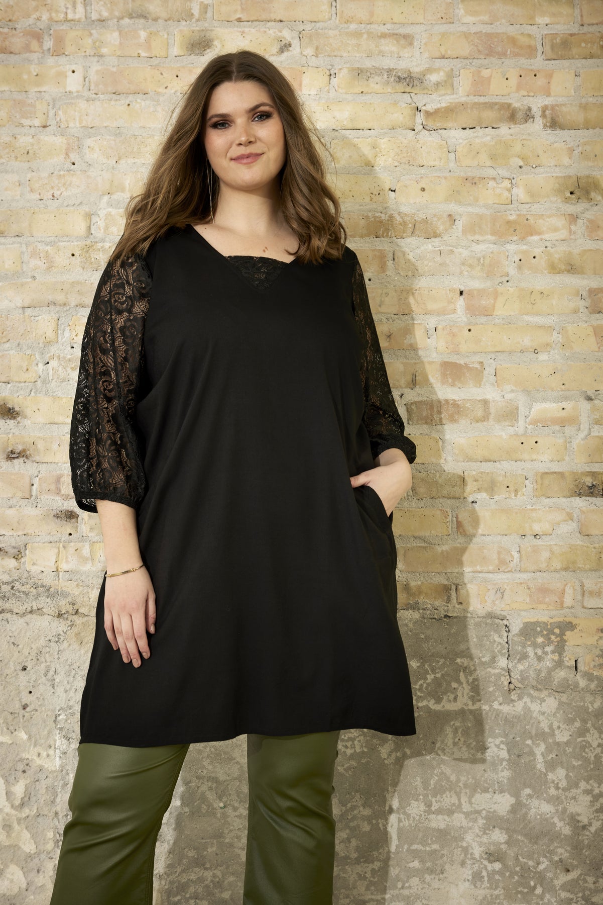 Zhenzi - Bibi tunika með vösum að framan. Blúndu kvartermar með teygju, V-hálsmál með blúndu að framan og að aftan. Hægt að nota bæði sem spari og hversdags.