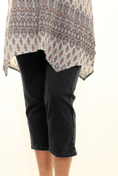 Zhenzi - Jazzy galla kvartbuxur. Teygja í mitti, frekar beinar niður, bóluhnappar neðst á skálmum, góð teygja í efni.
