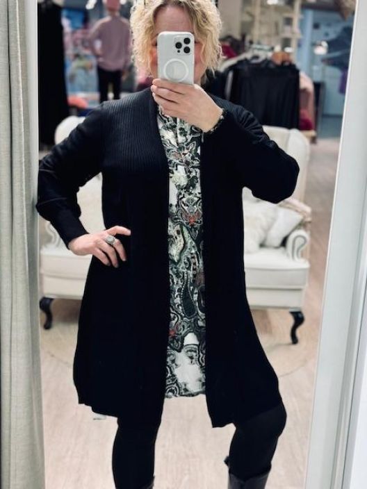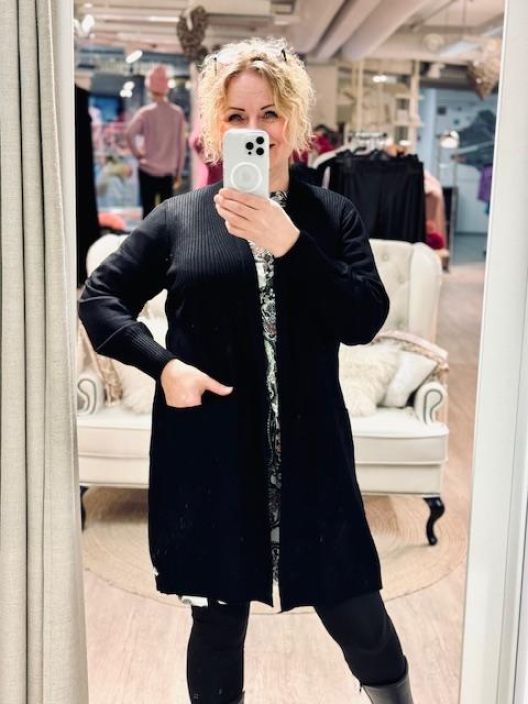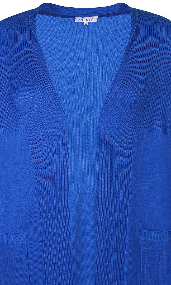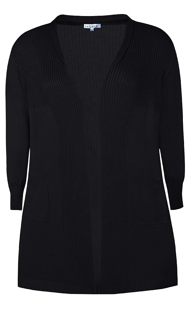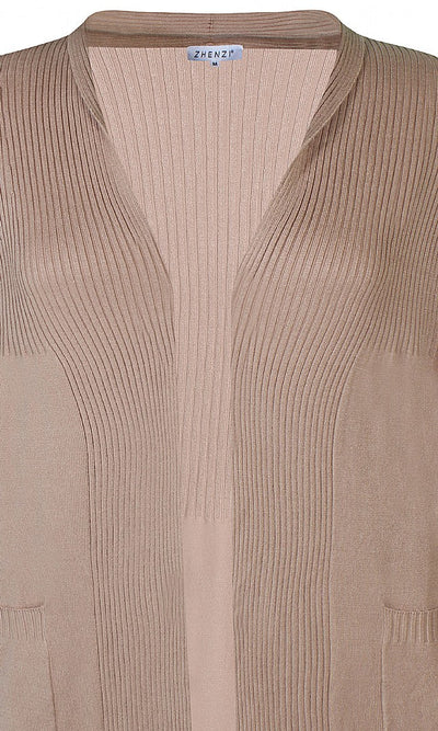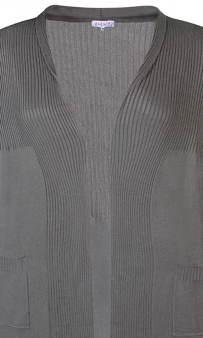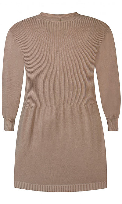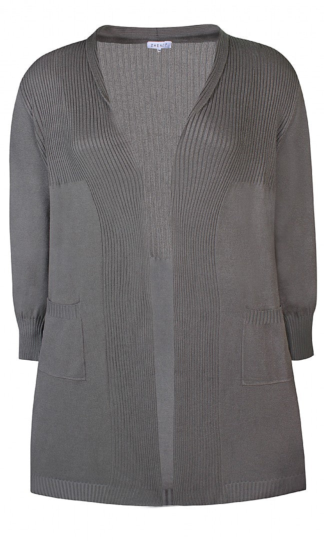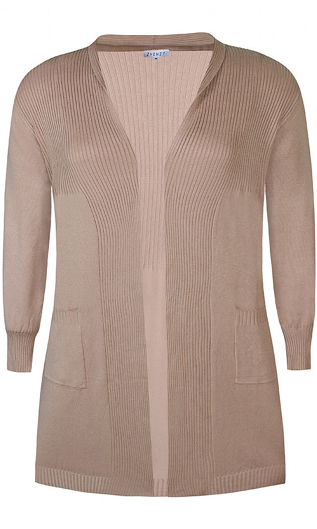 Zhenzi - Kogle opin peysa, rifflað prjón á kraga, öxlum og efra baki, stroff á ermum, vasar að framan. Mjúkt og lipurt efni. Hægt að nota yfir boli og kjóla.