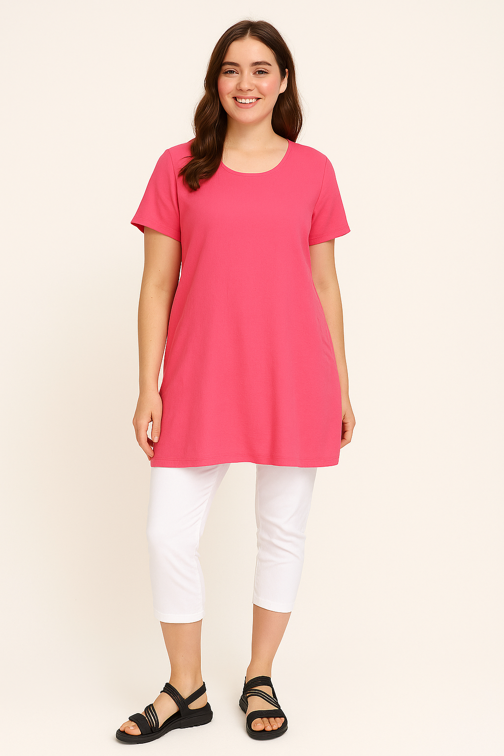 Zhenzi - Suvi flott og þægileg hör tunika með góðum vösum. Rúnað hálsmál og stuttar ermar, "key hole" gat og tala að aftan. Flott bæði sem hversdags og betri flík og passar vel með hverju sem er.