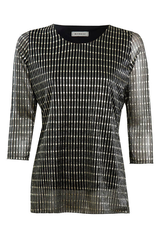 Bassini glansandi peysubolur með rúnuðu hálsmáli með lausu efni undir.