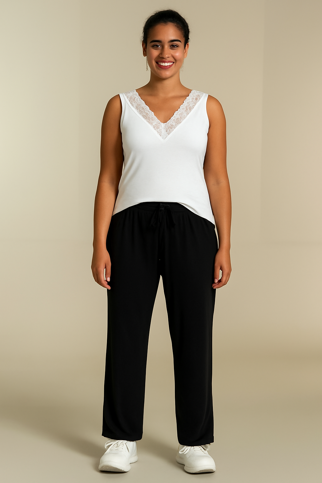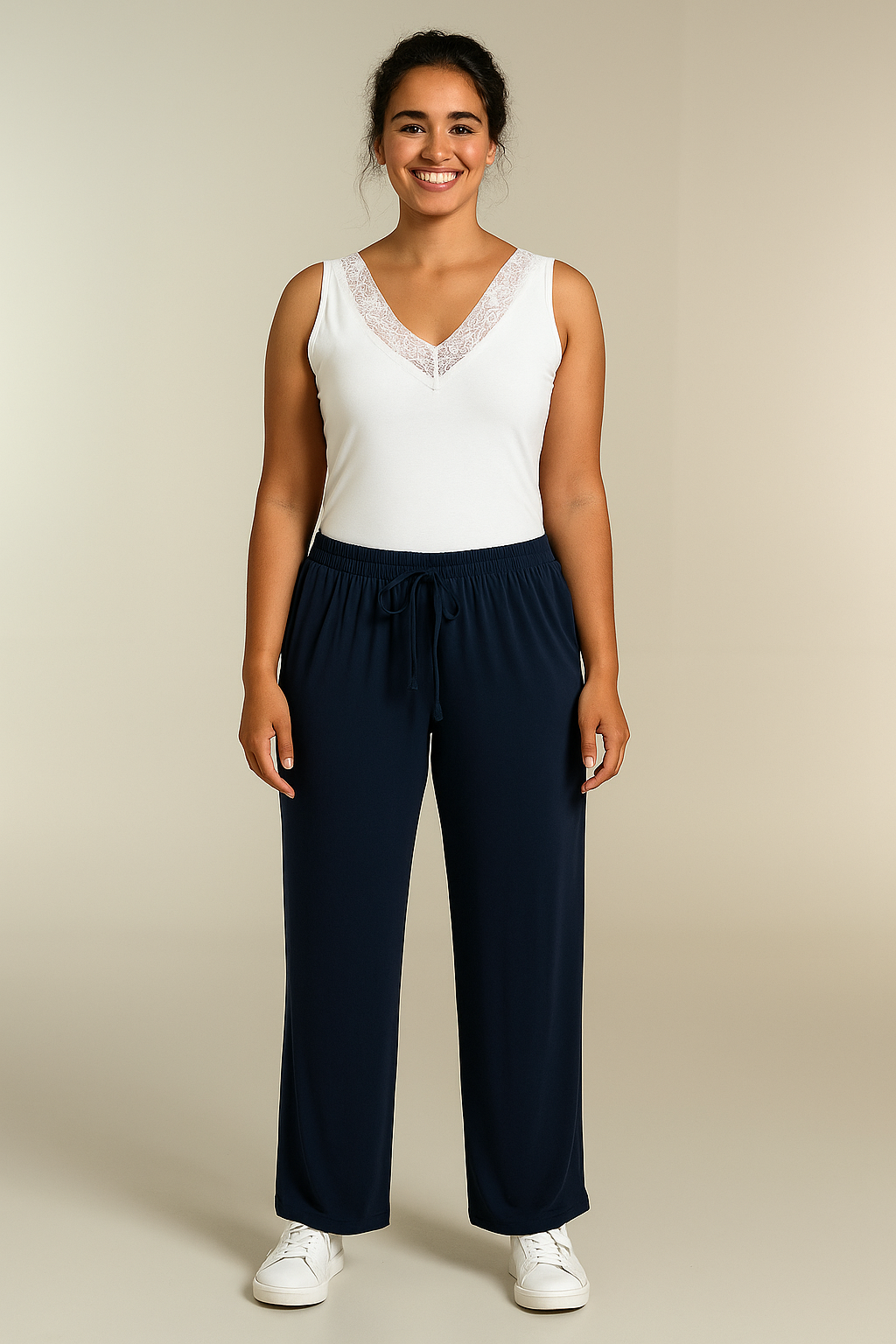 Bassini - Lily léttar og þægilegar buxur með góðri teygju í mitti og bandi til að draga saman, beinar niður, ná vel upp og sitja vel.