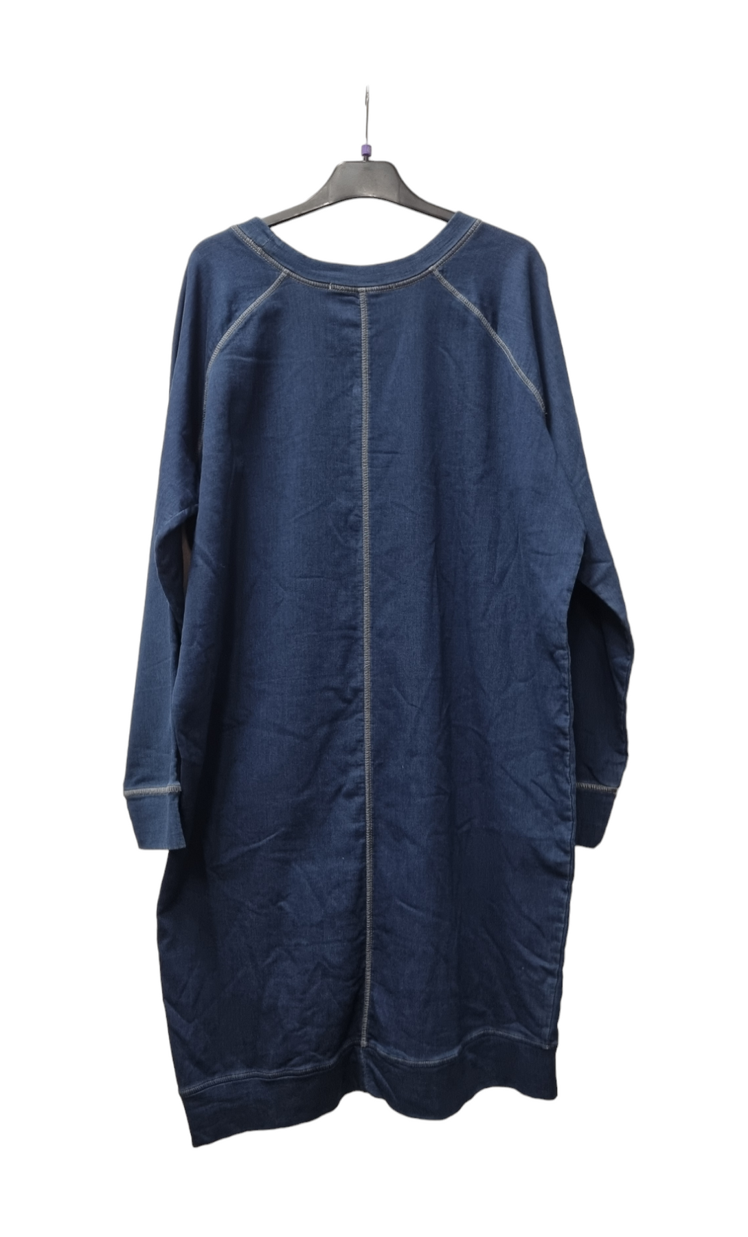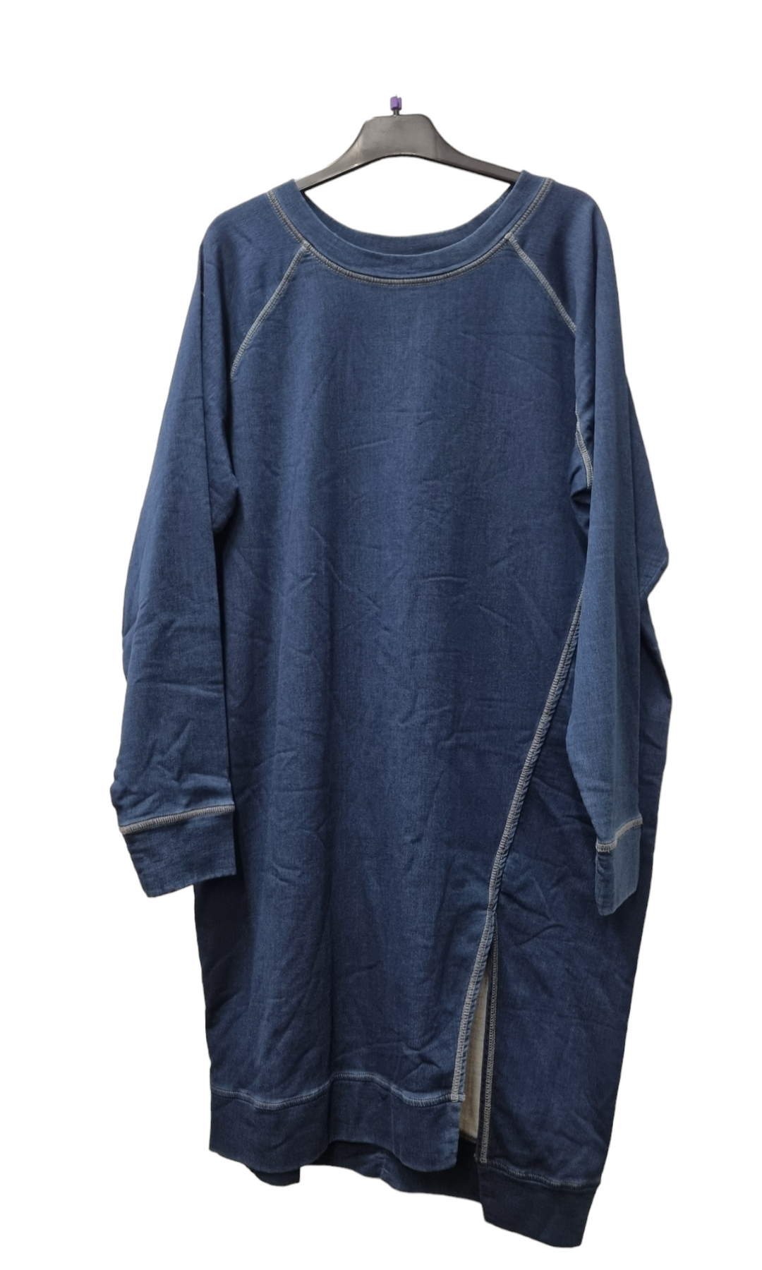 Blue Frog - Tess gallakjóll - Smart hnésíður síðerma kjóll úr flottu gallaefni. Saumurinn að framan er snúinn öðru megin og endar í klauf.