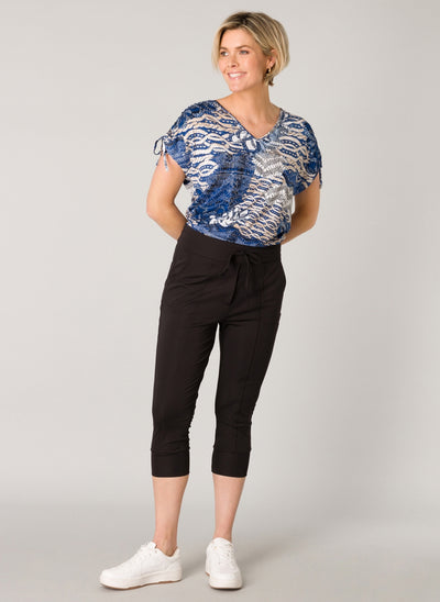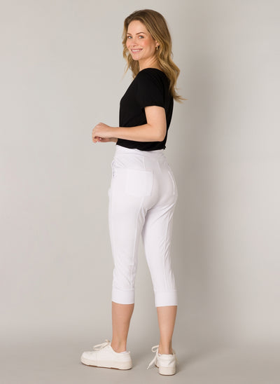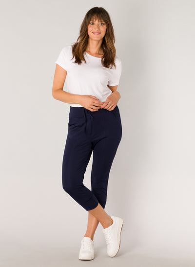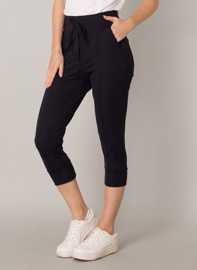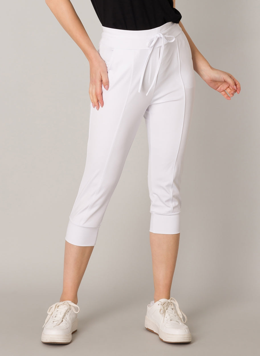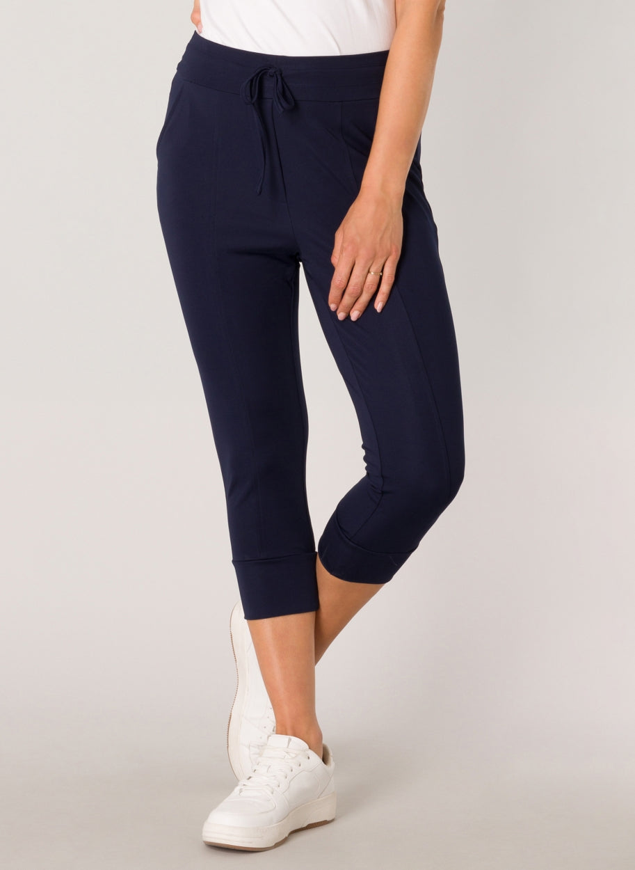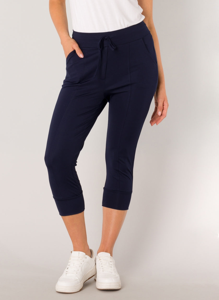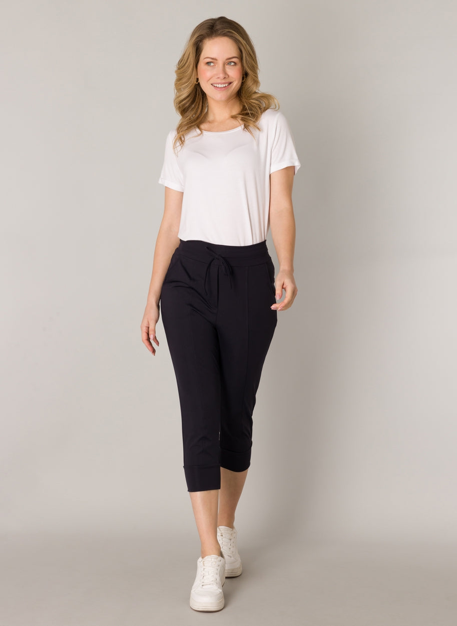 ES&SY Elly, léttar og þægilegar hálfsíðar joggingbuxur með breiðri teygju í mitti, vasar á hliðum og að aftan. Saumar að framan og aftan sem gefa skemmtilegt lúkk. Mjúkar og teygjanlegar og ná vel upp, ótrúlega þægilegar.